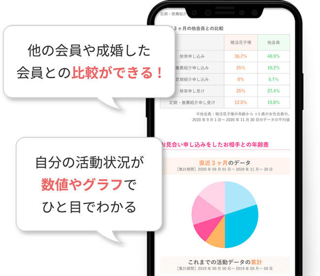 昨年は会員様がより良縁につながるお相手を簡単に探せるよう、AIが過去の成婚カップルの組み合わせを解析し、紹介してくれるサービスをリリースしています。