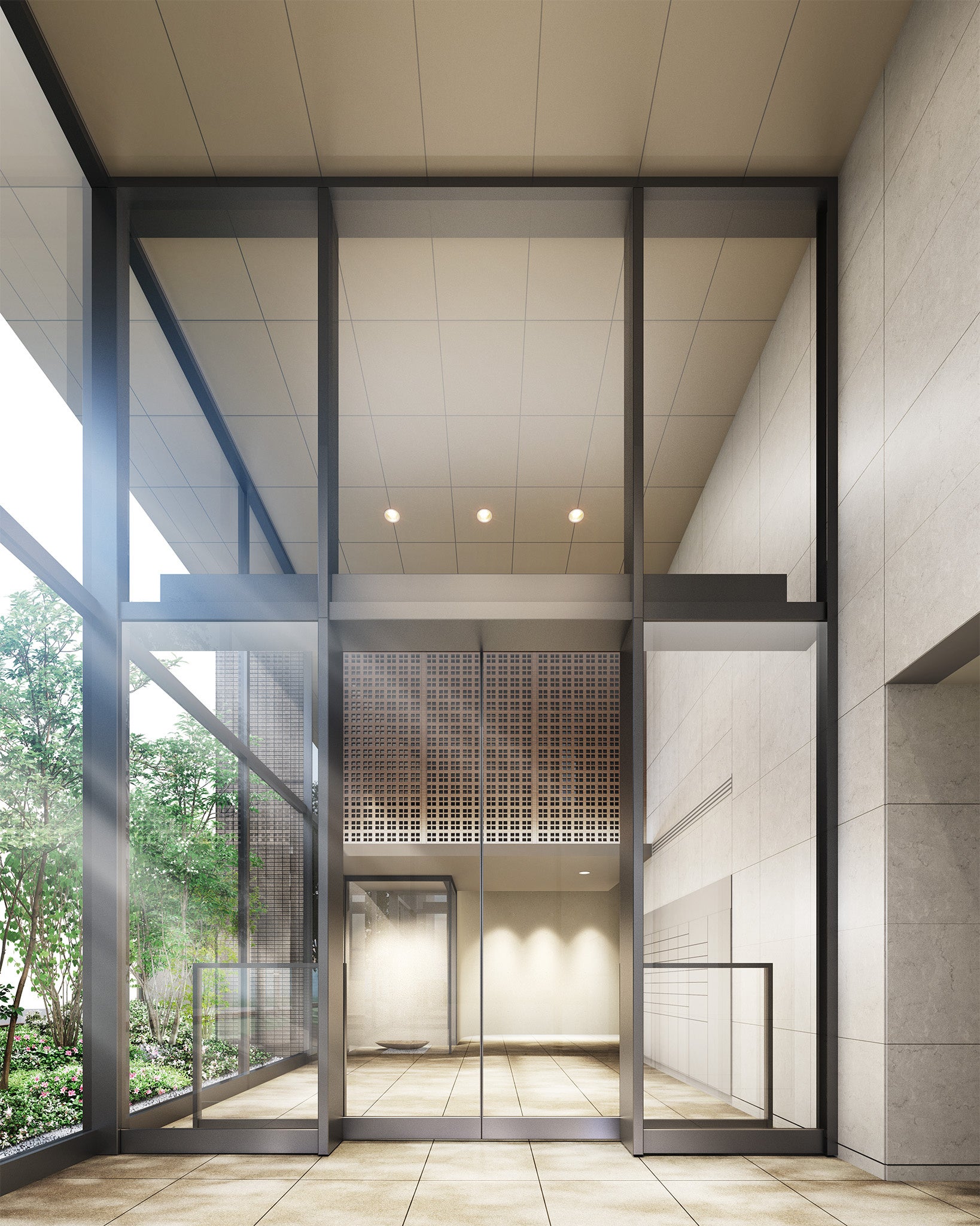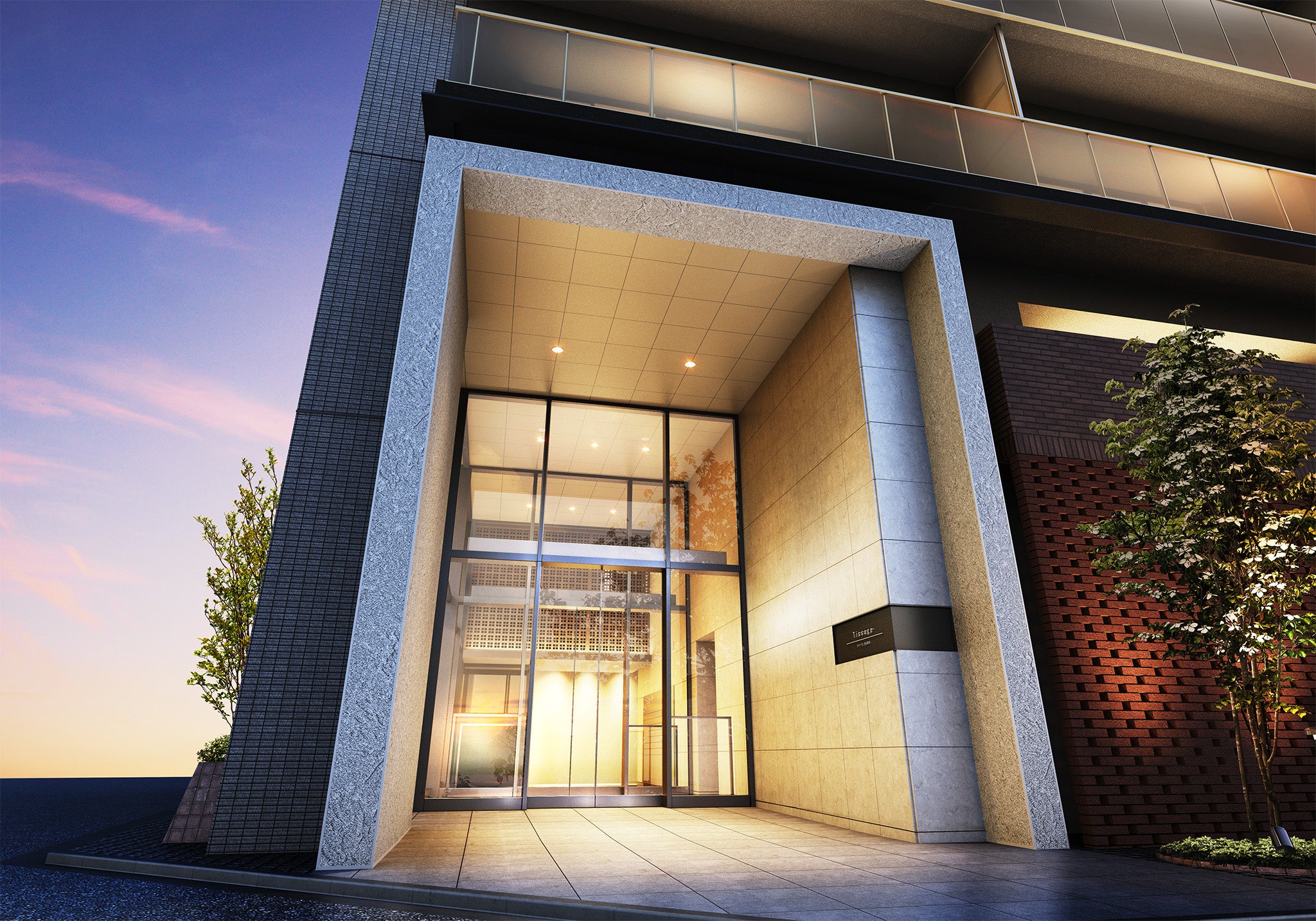 全戸南西向き、全41邸の住まいで構成された「ティサージュ豊田駅前」は、高級感をテーマにした素材選びやシンプルな外観デザインで、日野市のランドマークにふさわしいオーセンティックな佇まいとなっています。外観は、視認性が高く、緩く長い坂道のために駅から自然と見上げるような特徴的な立地条件を活かして、ガラス手摺りとスカイラインを整える最上階の庇により伸びやかな視線を生み出しています。建物内へ一歩入ると、二層吹き抜けガラスの透明感によって落ち着きと品格を纏うエントランスホールが、上質なプライベートを予感させるとともに住まう方を深い寛ぎへと導きます。