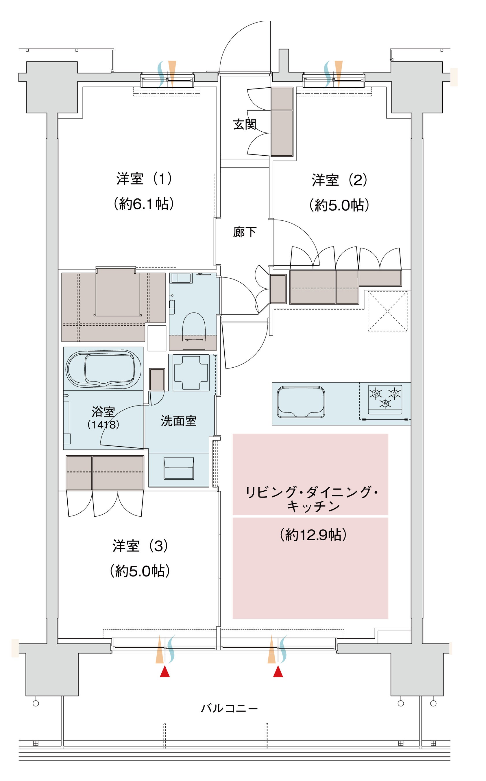 3LDK+WIC 住戸専有面積64.00㎡(約19.36坪)