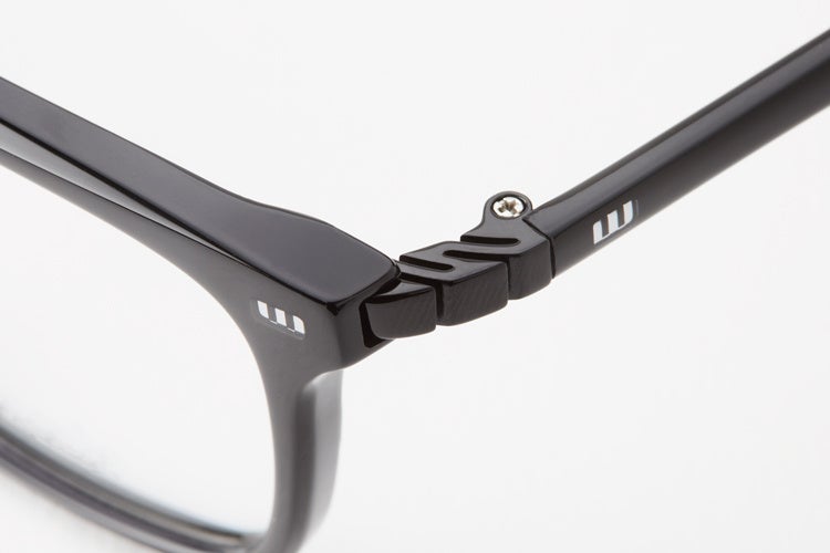 クラシカルな装いはそのままに、ツルを開閉させるヒンジ(丁番)部分には、最先端の技術を用いたバネ性のある特殊なチタン素材のパーツを使い、着用時のフィット感を高めています。フレームの普遍的な意匠と、快適なかけ心地を両立させています。