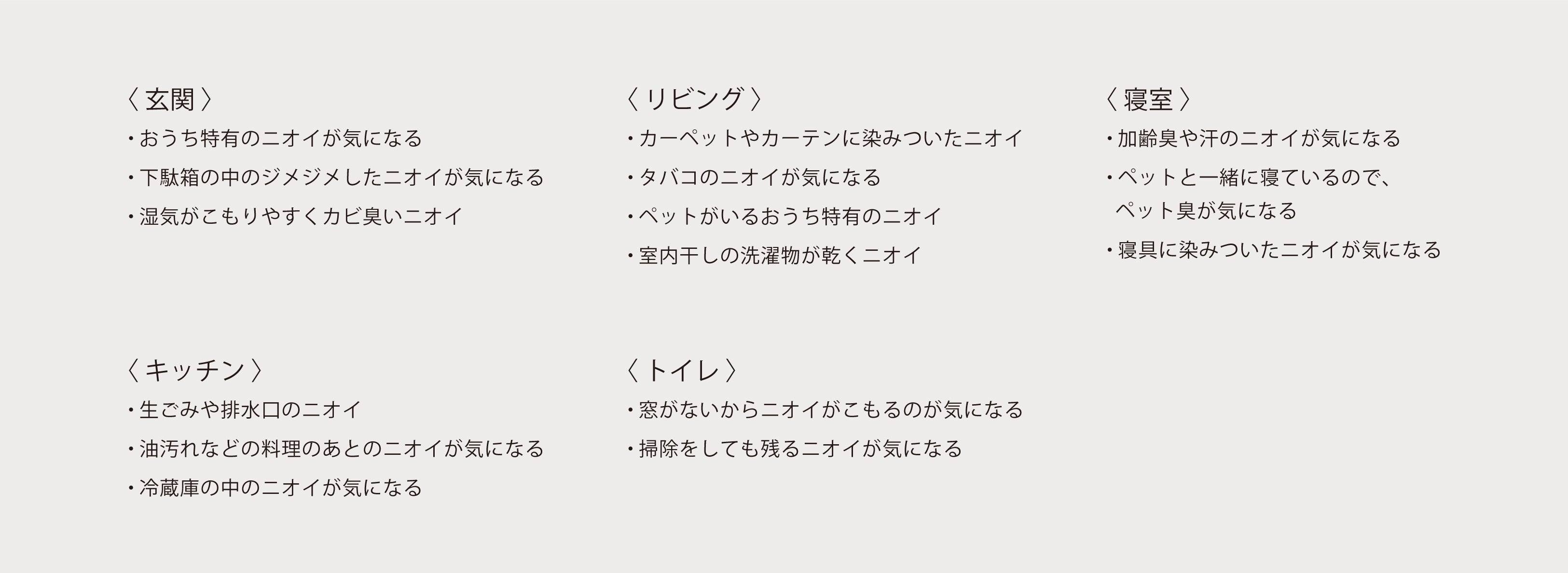 おうちの中には、玄関・キッチン・リビング・トイレ・寝室などさまざまなニオイの種類が発生しやすい場所が多くあります。コンパクトでレイアウトフリーなLEAF130は、ニオイの発生しやすい場所の近くにも置くことで、空気清浄をしながら低濃度のオゾンを放出することにより「除菌と消臭」の両立を可能とします。