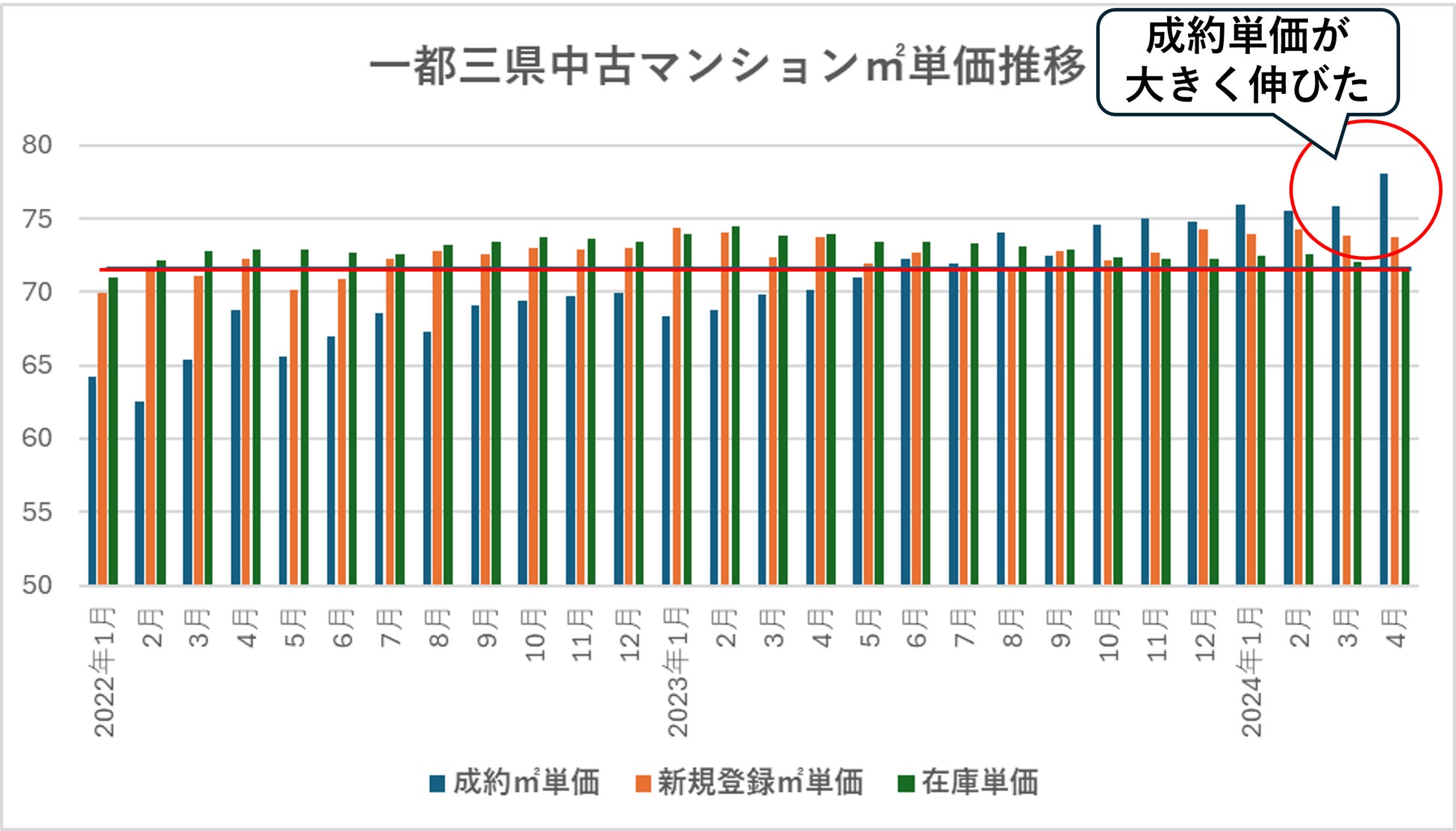 グラフ1:一都三県中古マンションの価格推移