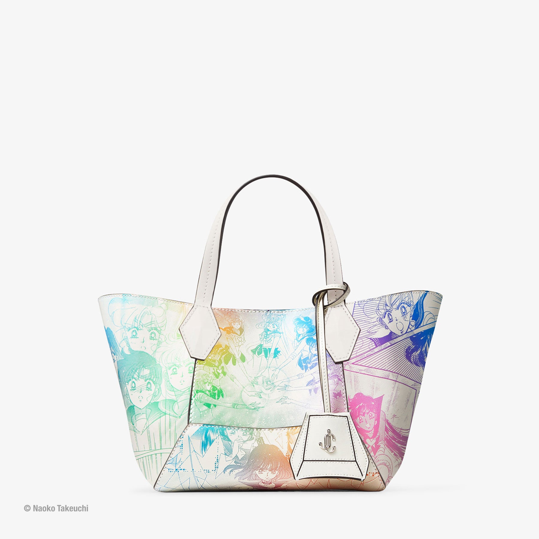 その他のフットウェアやアクセサリーは、武内直子氏によるオリジナルの漫画作品からインスピレーションを得て、アイテムの全体をキャンバスに表現されました。各シーンは、それぞれのセーラー戦士が力を発揮するとき、スーパーセーラームーンが登場するとき、世界が救われる瞬間など、セーラームーンの物語の重要なシーンが選ばれています。カードホルダー、スマートフォンケース、Air Podsケース、スカーフ、2サイズのDIAMOND TOTEは、ブラック&ホワイトと鮮やかなマルチカラーの2色展開。PALMA MAXIは、セーラー戦士それぞれのシグネチャーカラーを融合させたカラーとブラック&ホワイトの2種類で登場します。AVENUE VANITY BAGには、アイテムごとにセーラー戦士それぞれを象徴するカラーで描かれています。