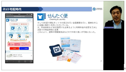 当社が運営する、お客様満足度4年連続No.1(※1)を受賞した宅配クリーニング『せんたく便』は、高品質なクリーニングサービスの提供に加え、受注から納品までインターネット上で一括に行えるクラウドシステムも提供しております。年間100万着以上扱うクリーニング業者として、今回、VOC排出抑制の取組を通じて、環境負荷低減に加え、コスト削減にも成功した事例として当社の代表吉原が登壇しました。