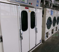 また、溶剤回収が非対応の乾燥機と比べて、当社が導入したドライクリーニングで使用する石油系溶剤が回収・再利用できる乾燥機溶剤は、溶剤を揮発させるための熱風が低温で、なおかつ乾燥時間が短時間で済むため、蒸気エネルギー排出が半分以下と大幅削減につながっています。