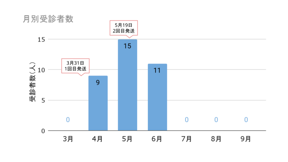 1.通知送付後3カ月で、33.7%(35人/104人)の方が骨粗鬆症に関して医療機関を受診。