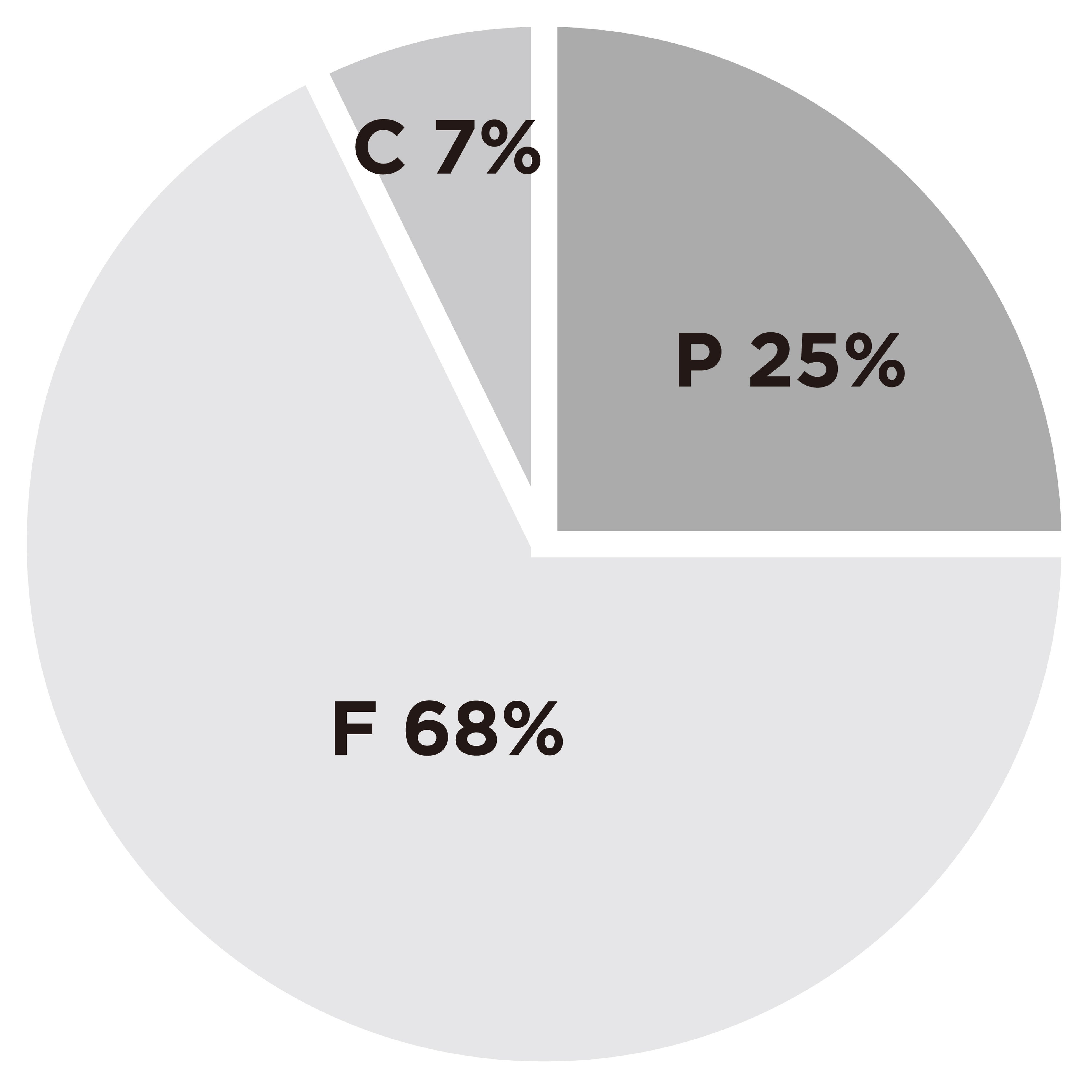 『COMP Powder LC』(COMP パウダータイプ 糖質調整モデル)は「日本人の食事摂取基準(2020年版)」を参考とした設計から、三大栄養素「Protein(たんぱく質)」「Fat(脂質)」「Carbohydrate(炭水化物)」の比率をアレンジした糖質調整モデルの栄養食です。