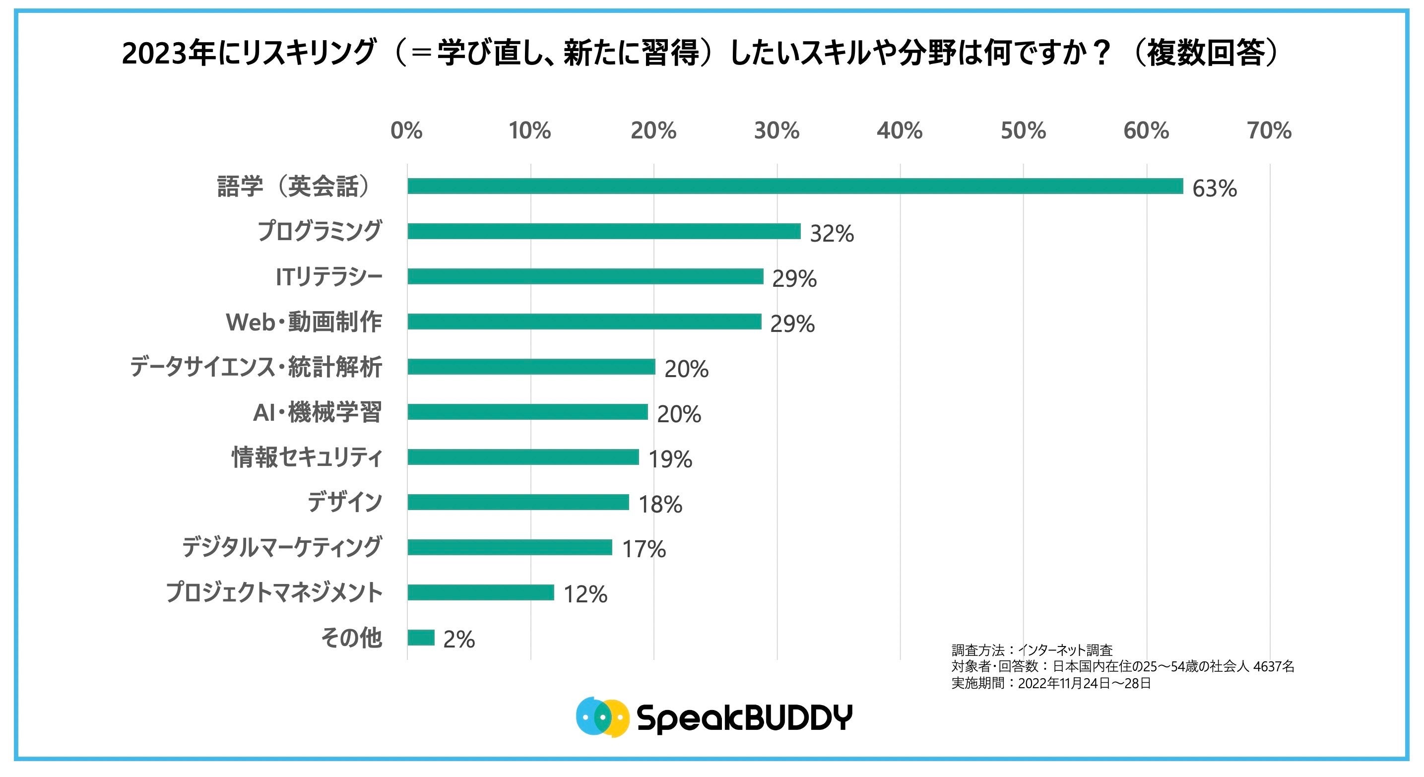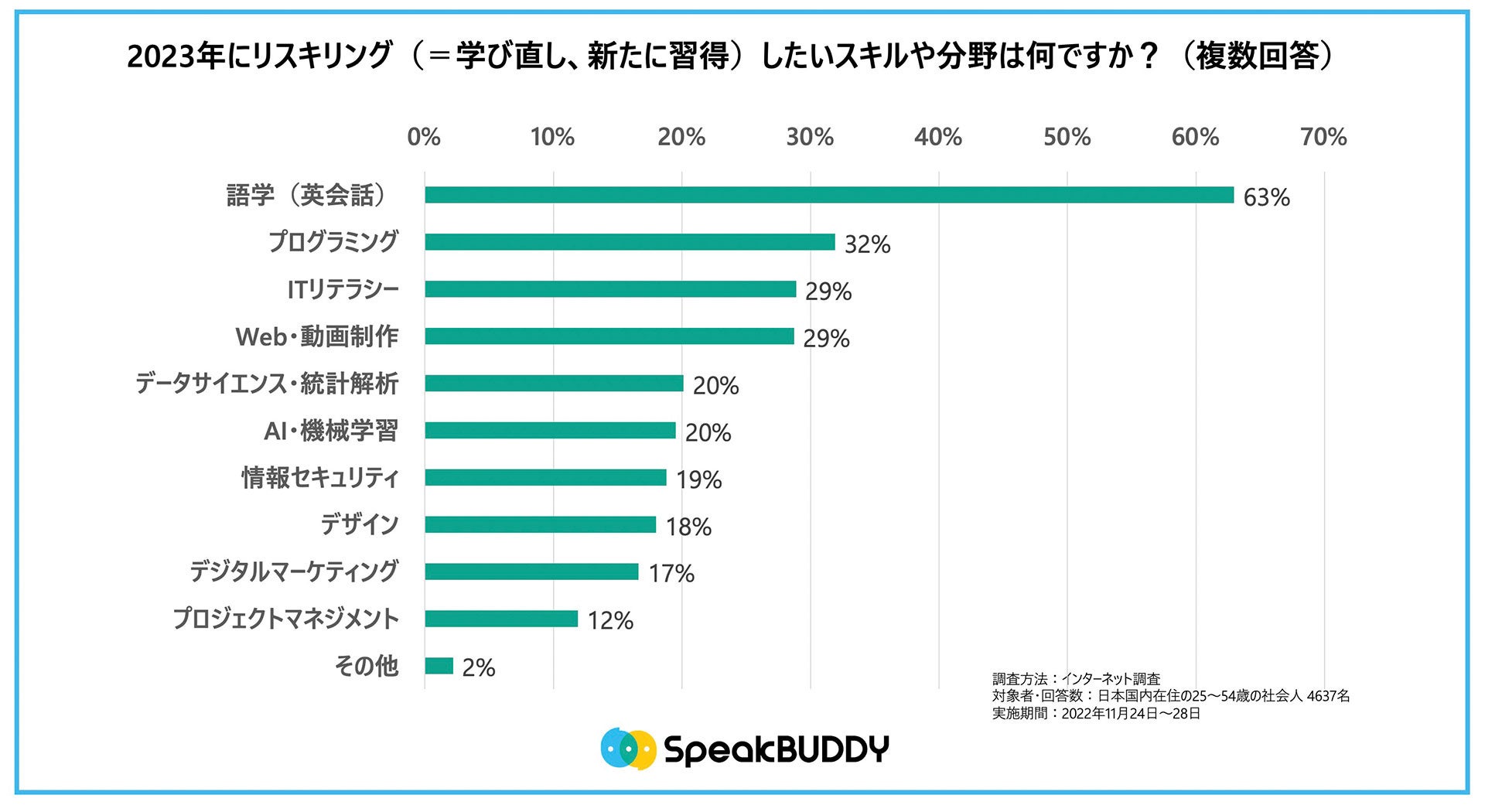 「2023年に学び直したいこと」として5人に3人が「英会話」を選択
