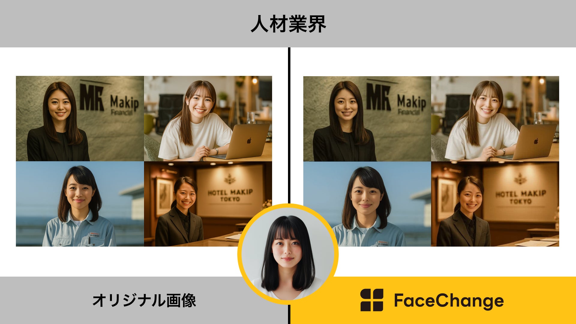 株式会社メイキップ(東京都新宿区、代表取締役:柄本 真吾、以下「メイキップ」)は、顔合成AI「FaceChange」の提供対象をアパレル業界にとどまらず、ライフスタイル領域をはじめとする他業界へと拡大開始することを明らかにいたしました。