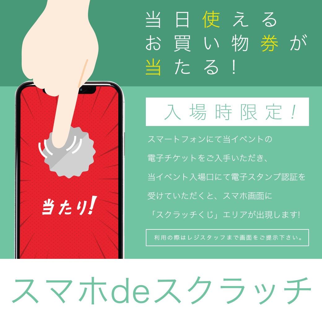ご来場者にTOKYO OUTLET WEEK内限定クーポンがその場で当たるチャンス!!入場受付後にみんなのスマホにアンケートが出現します。回答いただくとスクラッチくじに挑戦できます。クーポンを当ててお買い物を楽しもー!!