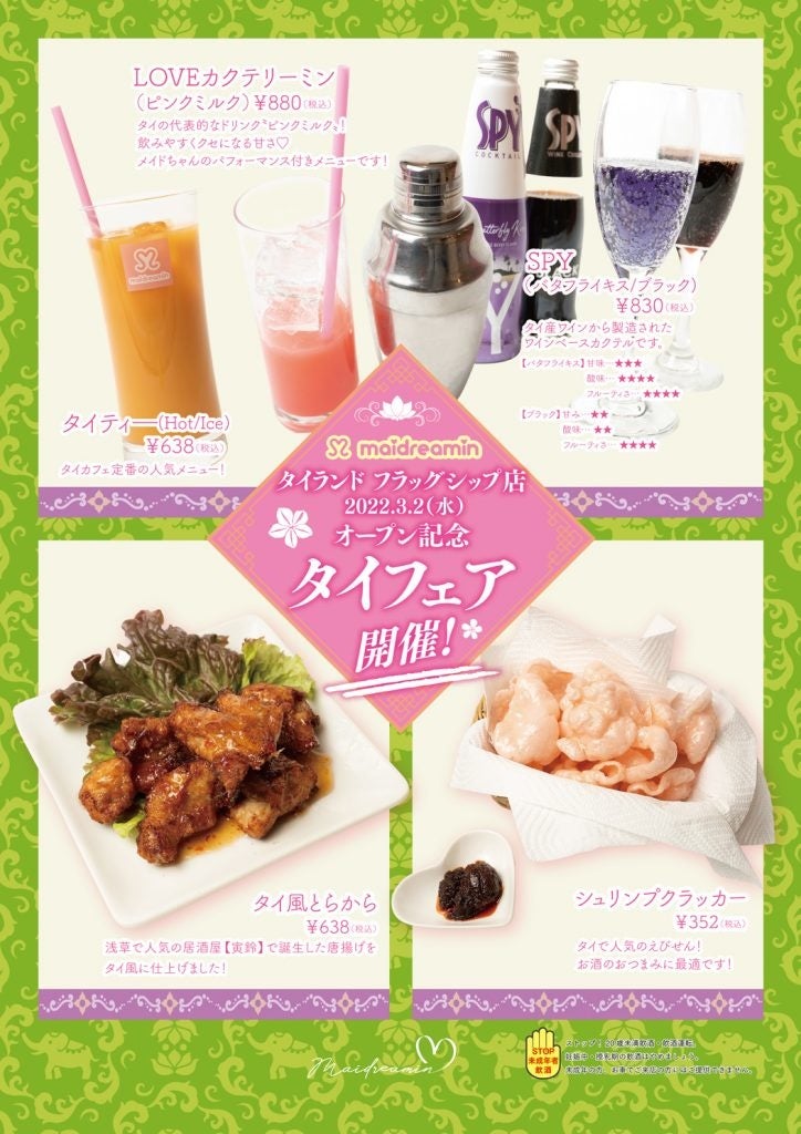 また、日本のめいどりーみん店舗ではタイランド・フラッグシップ店オープンを記念した“タイフェア”を開催!
