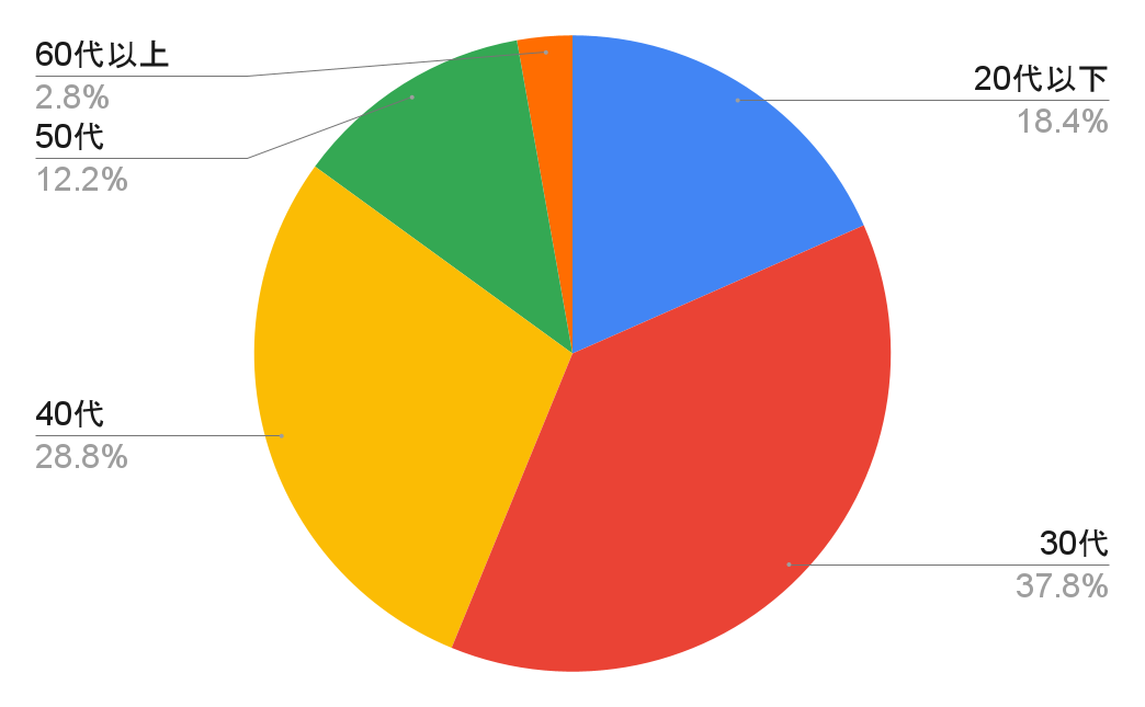 今回のアンケートでは女性の方が多く反応していただき、30代・40代を中心に多く回答いただきました。