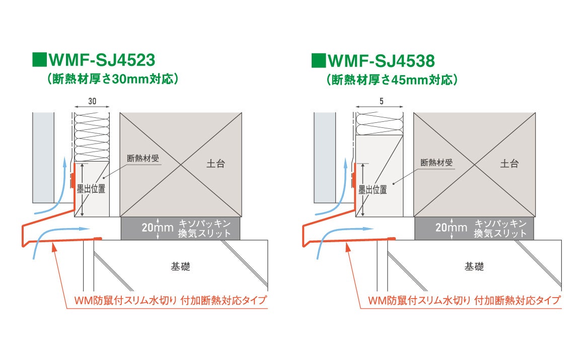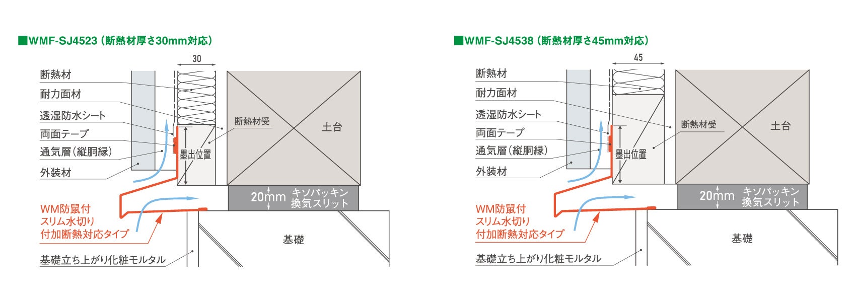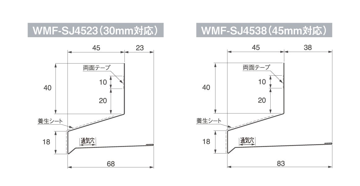 品番:WMF-SJ4523-□□(付加断熱材厚さ30mm対応) / WMF-SJ4538-□□(付加断熱材厚さ45mm対応)
