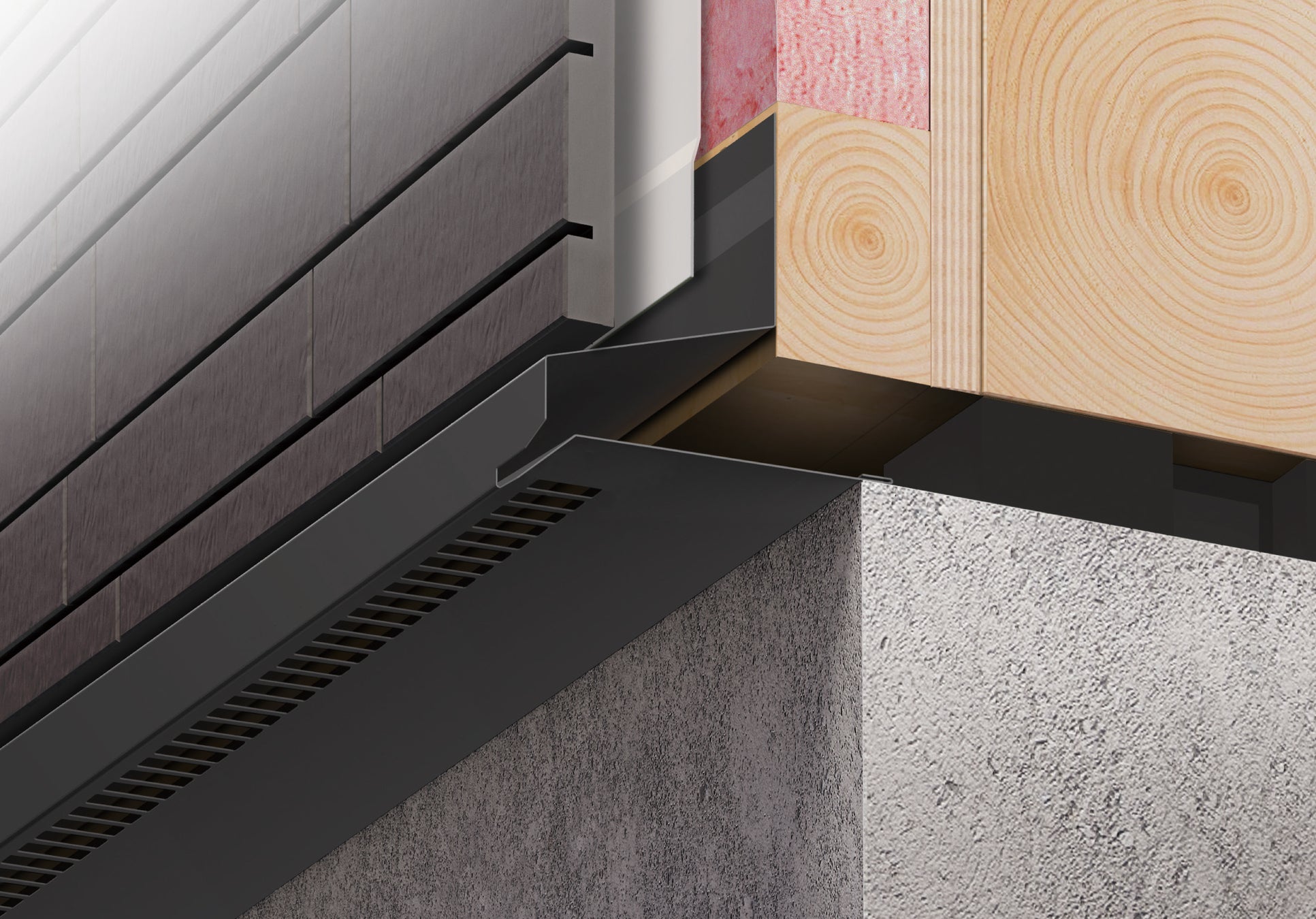 外壁に吹きつける雨水や通気層内部に浸入した雨水を排出する。