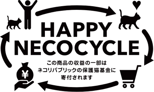 保護猫の支援活動には資金が必要で、ボランティアだけでは継続するのが難しい面があります。オリジナルグッズの販売など株式会社としてビジネスをしながら、非営利の保護猫活動に真摯に取り組む。商売と非営利活動の両輪を本気でやる唯一無二の存在として事業に取り組んでいます。私の役目は、ビジネスアイデアを形にして資金を作り、ネコリパのスタッフが遠慮なく保護猫活動に邁進できるような環境をつくることだと考えています。何かを犠牲にするのではなく関わる人みんなが幸せであることがとても重要です。そうでないと社会も変わっていかないし共感も生まないですよね。猫を保護しながら応援者も集める、この両者のバランスを保ちながら、サスティナブルな猫助けをしたいと考えていますね。これが「HAPPY NECO CYCLE」です!