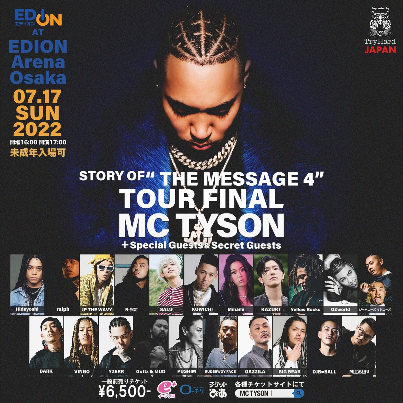 MC TYSONが7月17日(日)エディオンアリーナで、5000人規模によるワンマンライブ『THE MESSAGE 4 TOUR FINAL』を開催した。