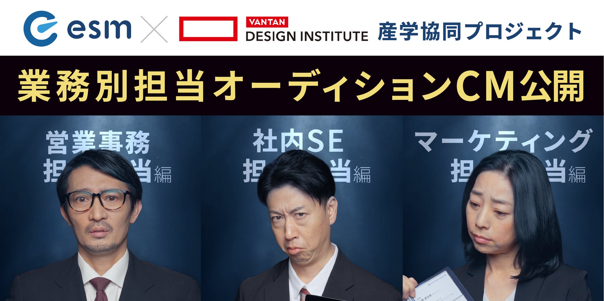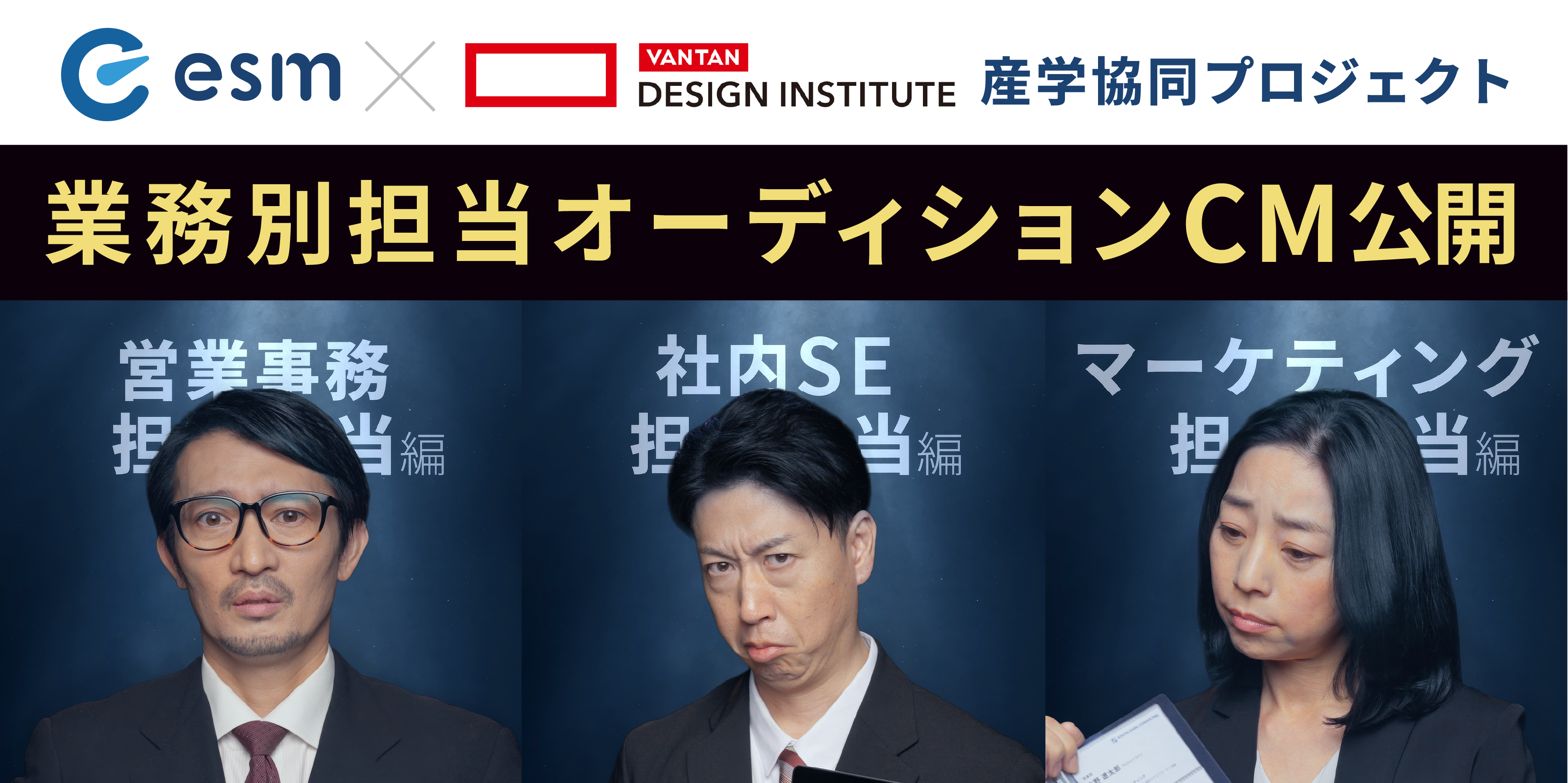 本産学協同プロジェクトでは、同戦略を担う8製品のうち、MAツール「esm marketing」、ワークフローツール「esm flow」、ノーコードツール「esm appli」の3製品(以下、esmシリーズ)を対象に、映像広告による認知拡大を目指しています。