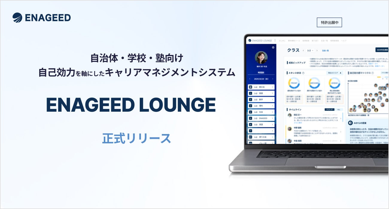中高生・社会人の自己効力を育成するサービス「ENAGEED」を提供する株式会社エナジード(本社:東京都新宿区、代表取締役:氏家光謙、以下 エナジード)は、これからの学校教育に求められる“自己効力感(Self-Efficacy)の育成”と“教師の手応えある関わりを通じた『やりがい』”を実現するためのツールとして、「LOUNGE」の正式リリースをお知らせします。