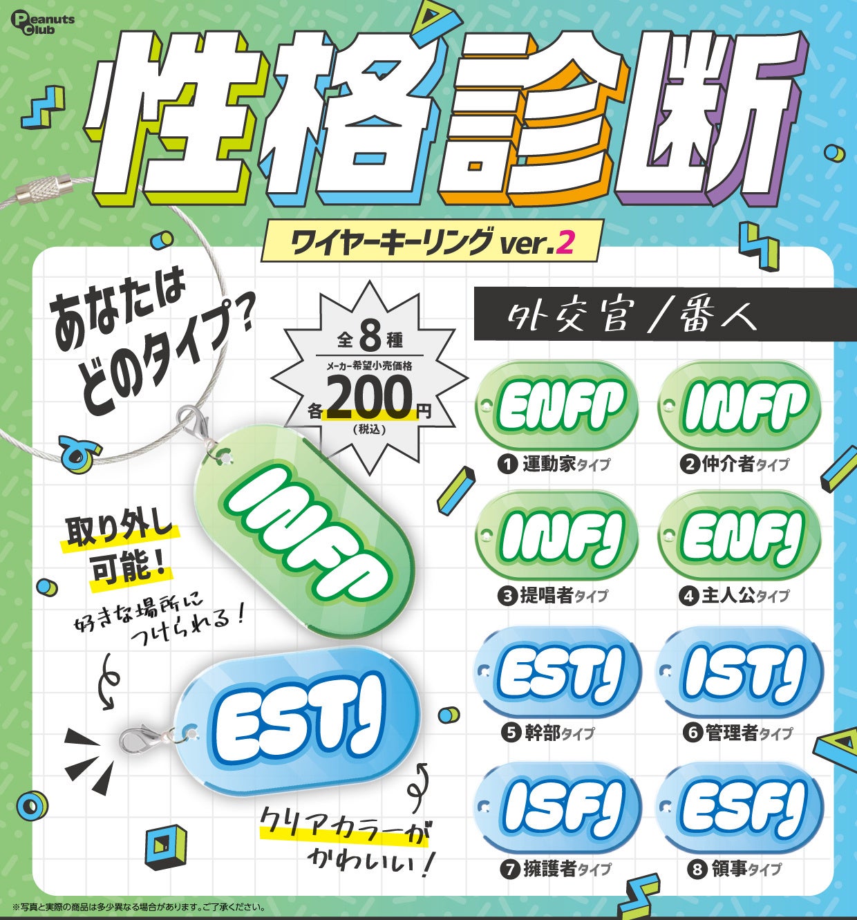 株式会社ピーナッツ・クラブ(本社・大阪府東大阪市、支社・東京都港区高輪、代表取締役社長・前田泰裕)は、カプセルトイの新製品『性格診断ワイヤキーリング ver.1』と『性格診断ワイヤキーリング ver.2』を2024年11月21日より順次、全国のカプセルトイ売場で販売します。