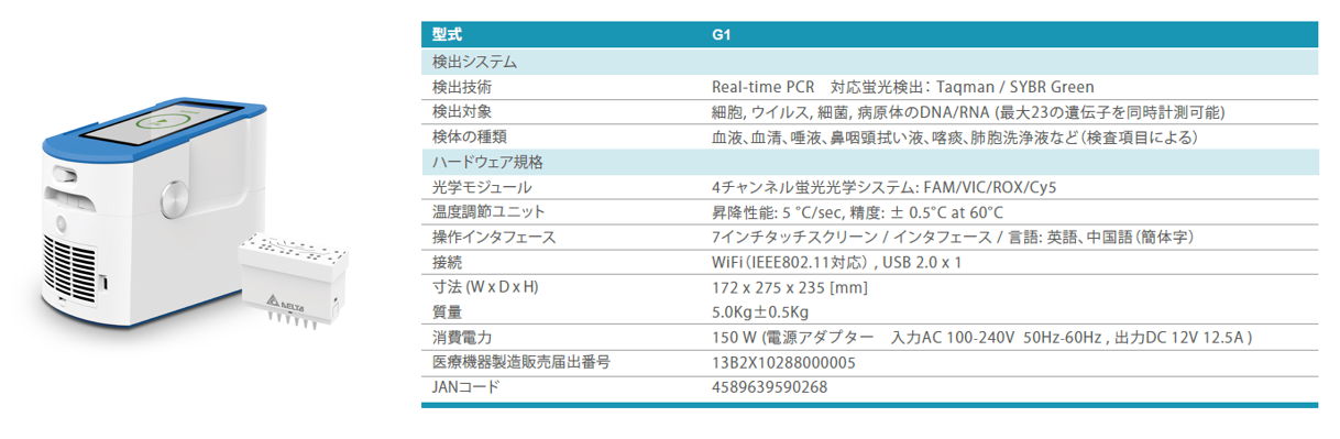 デルタ電子株式会社(本社:東京都港区、代表者:柯進興)は、デルタグループ傘下の医療機器メーカーであるDELBio, Inc.社のリアルタイムRT-PCR機である「全自動遺伝子解析装置G1」のレンタルサービスを、医療機関向けに開始いたします。
