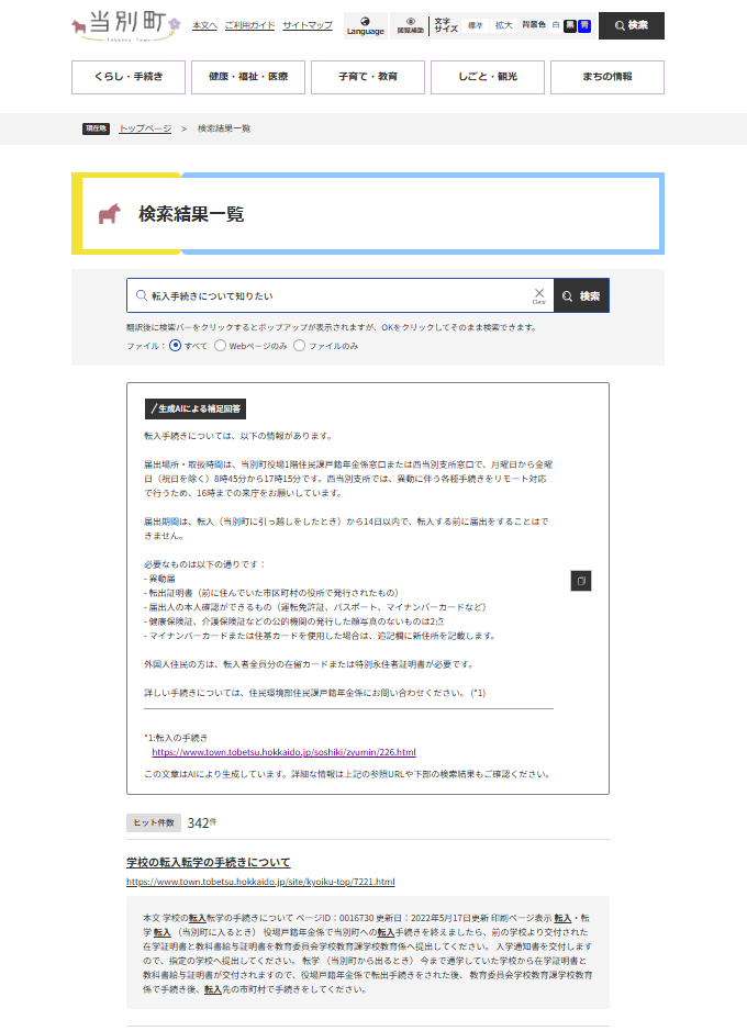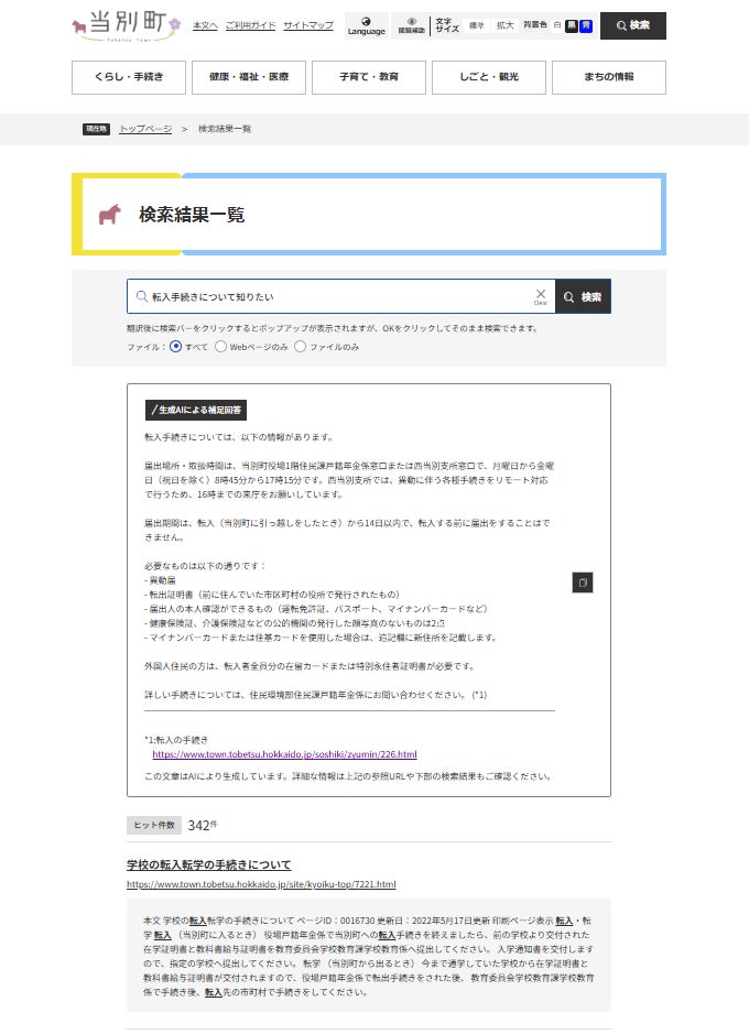 生成AIと連携したAI検索「Cogmo Enterprise 生成AI(コグモ・エンタープライズ)」を提供する株式会社アイアクト(東京都港区、https://www.iact.co.jp/、以下、アイアクト)は、北海道石狩郡当別町(https://www.town.tobetsu.hokkaido.jp/、以下、当別町)のWebサイト内検索において、2025年8月、「Cogmo Enterprise 生成AI 」をご導入いただきました。
