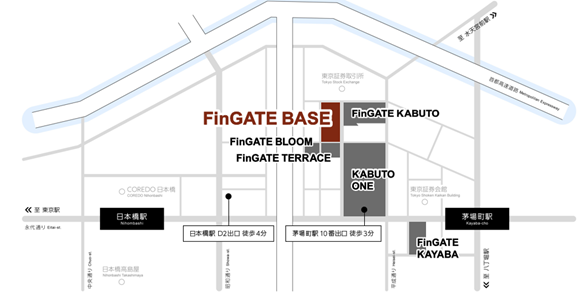 (*)FinGATE KAYABA(2017年開設)、FinGATE KABUTO(2018年開設)、FinGATE BASE(2018年開設)、FinGATE TERRACE(2020年開設)、FinGATE BLOOM(2022年開設)の5施設
