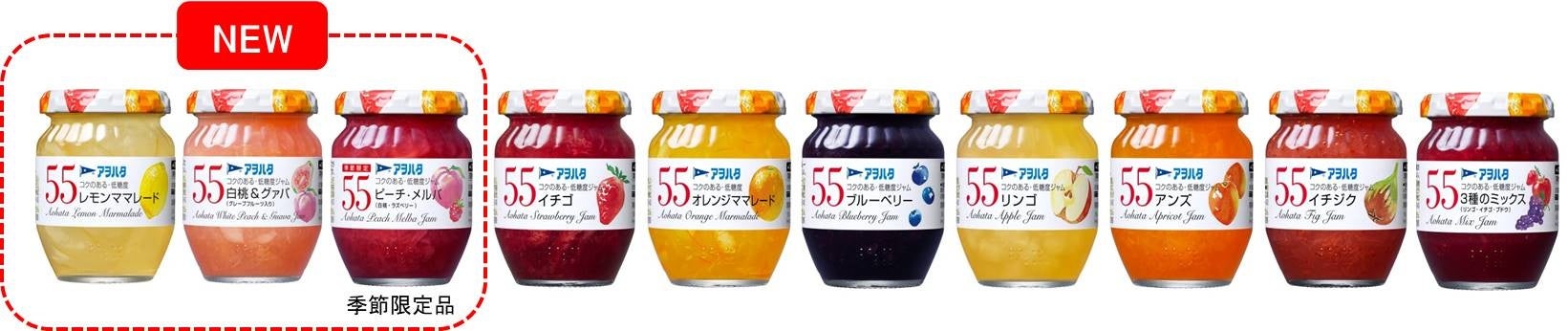 「アヲハタ 55」シリーズから新商品「レモンママレード」「白桃&グァバ(グレープフルーツ入り)」と季節限定品「ピーチ・メルバ(白桃・ラズベリー)」を発売