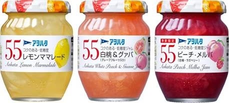 アヲハタ株式会社(本社:広島県竹原市、代表取締役社長:山本範雄、以下アヲハタ)は低糖度ジャムの「アヲハタ 55」シリーズから、新商品「レモンママレード」と「白桃&グァバ(グレープフルーツ入り)」の2品と、春夏の季節限定品「ピーチ・メルバ(白桃・ラズベリー)」を発売します。