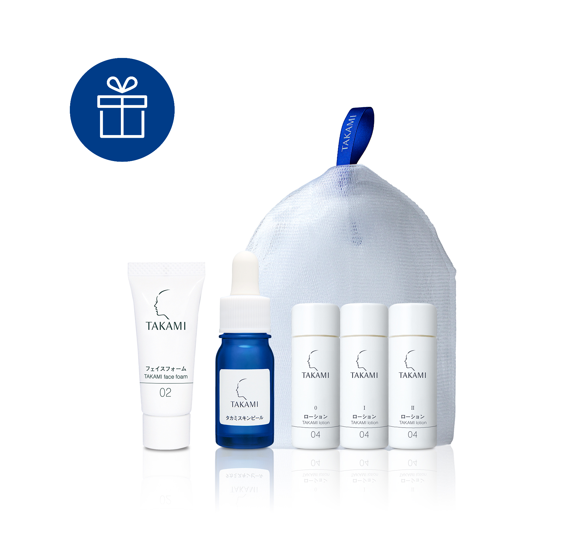 ベストコスメを多数受賞している角質美容水「タカミスキンピール」の特別サイズ60mLと、肌悩みに合わせて2種からお選びいただける美容液「タカミエッセンス」1本と、特別サイズ80mLの化粧水「タカミローション」がセットになった期間限定ショップ特別セットです。