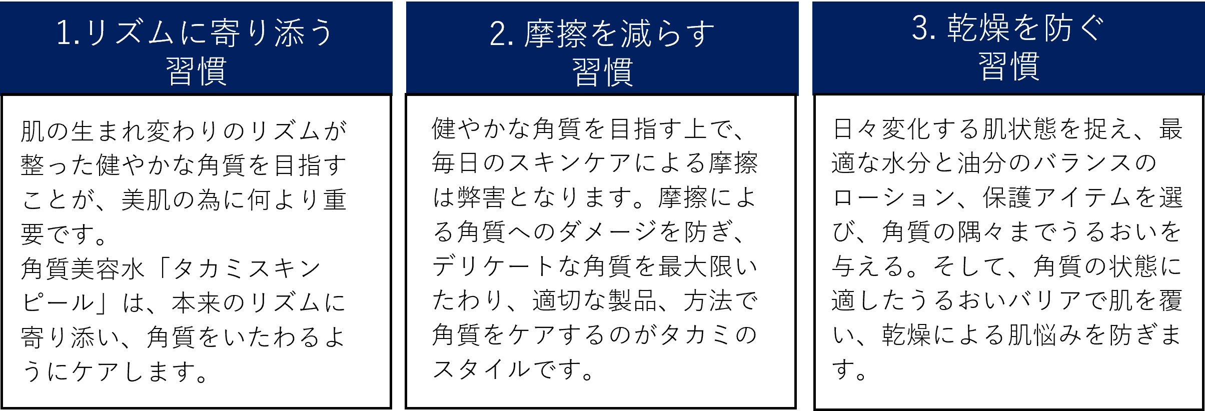 角質にこだわり、いたわり、整えるためのスキンケアメソッド、そして“正しいスキンケアの習慣化”その答えがタカミの提唱する“角質美容Ⓡ”です。