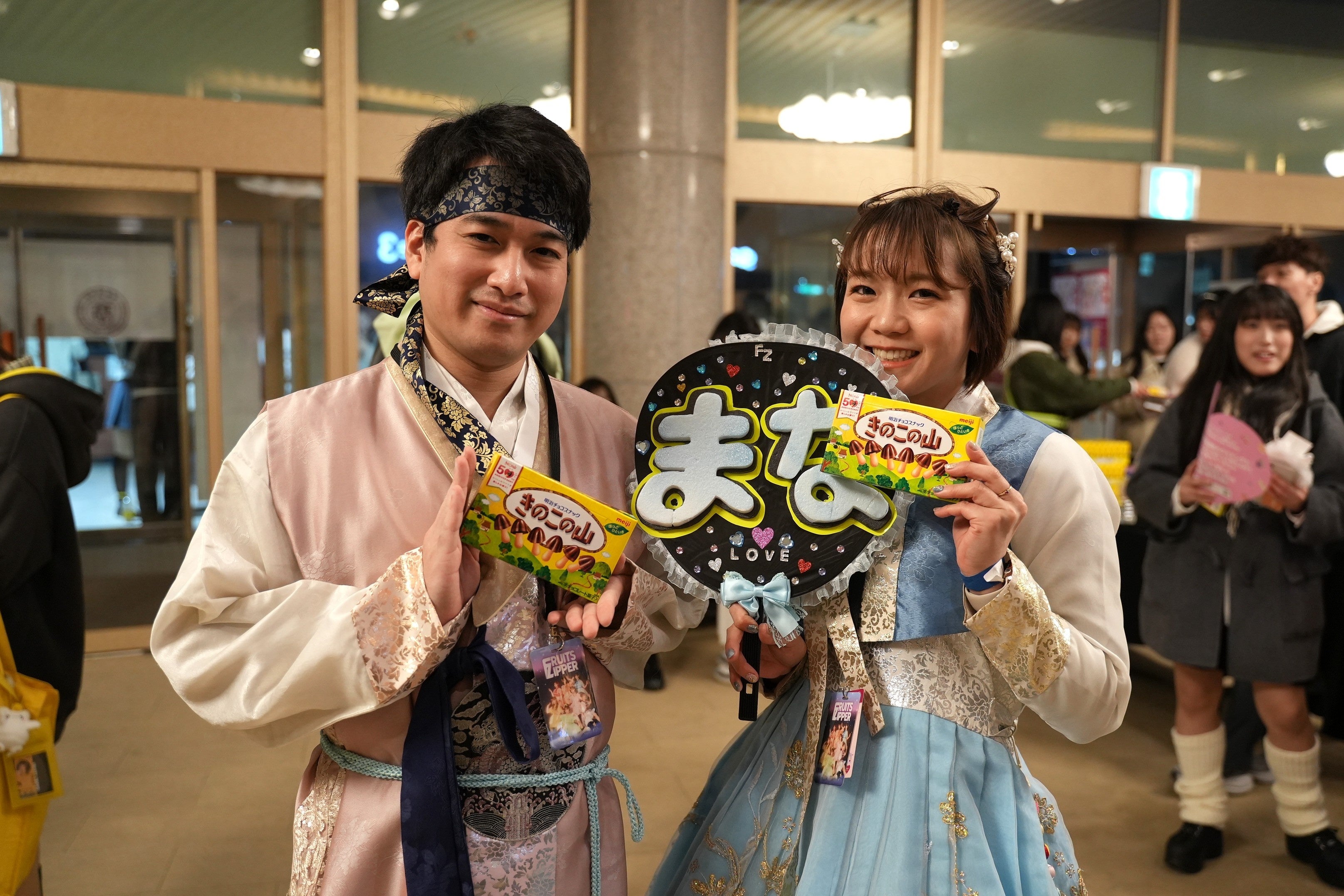 各地のライブ会場では、CM放映や来場者全員への商品サンプリングを行ったほか、FRUITS ZIPPERが現地で直筆したサインパネルも設置。商品を手にパネルと一緒に写真撮影を楽しむファンの姿が多く見られるなど、会場は終始賑やかな雰囲気に包まれました。FRUITS ZIPPERメンバーからは、「日本にはもっともっとたくさん明治さんのお菓子がある!」「海外でも人気なんだなと実感できて、なんだか嬉しかった」「マシッソヨ〜!きのこの山〜!」などと現地でコメントを寄せられ、お菓子を通じたコミュニケーションが国や地域を越えて広がるアジアツアーとなりました。