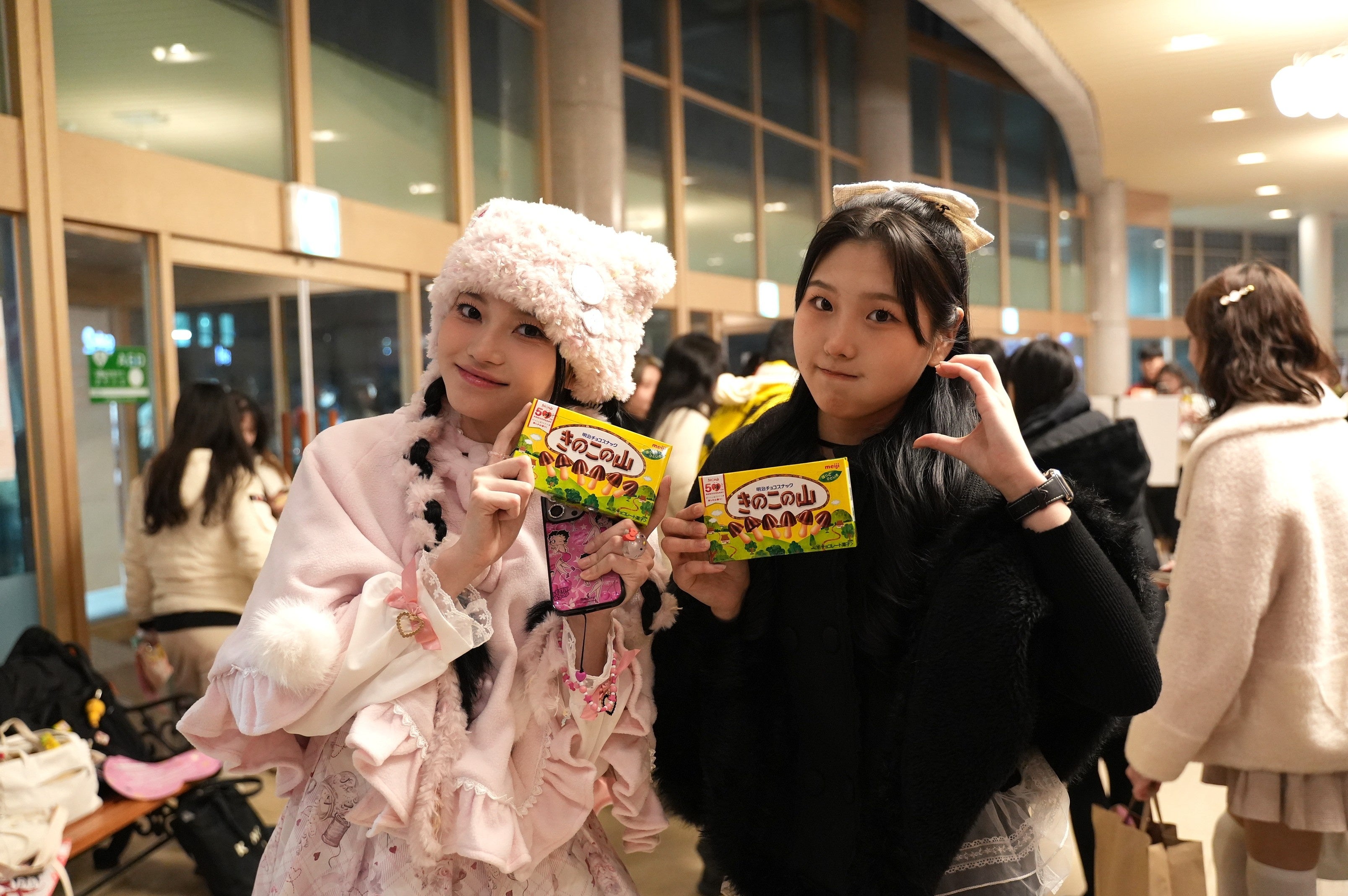 「日本にはもっともっとたくさん明治さんのお菓子がある!」「海外でも人気なんだなと実感できて、なんだか嬉しかった」「マシッソヨ〜!きのこの山〜!」などと現地でコメント寄せる