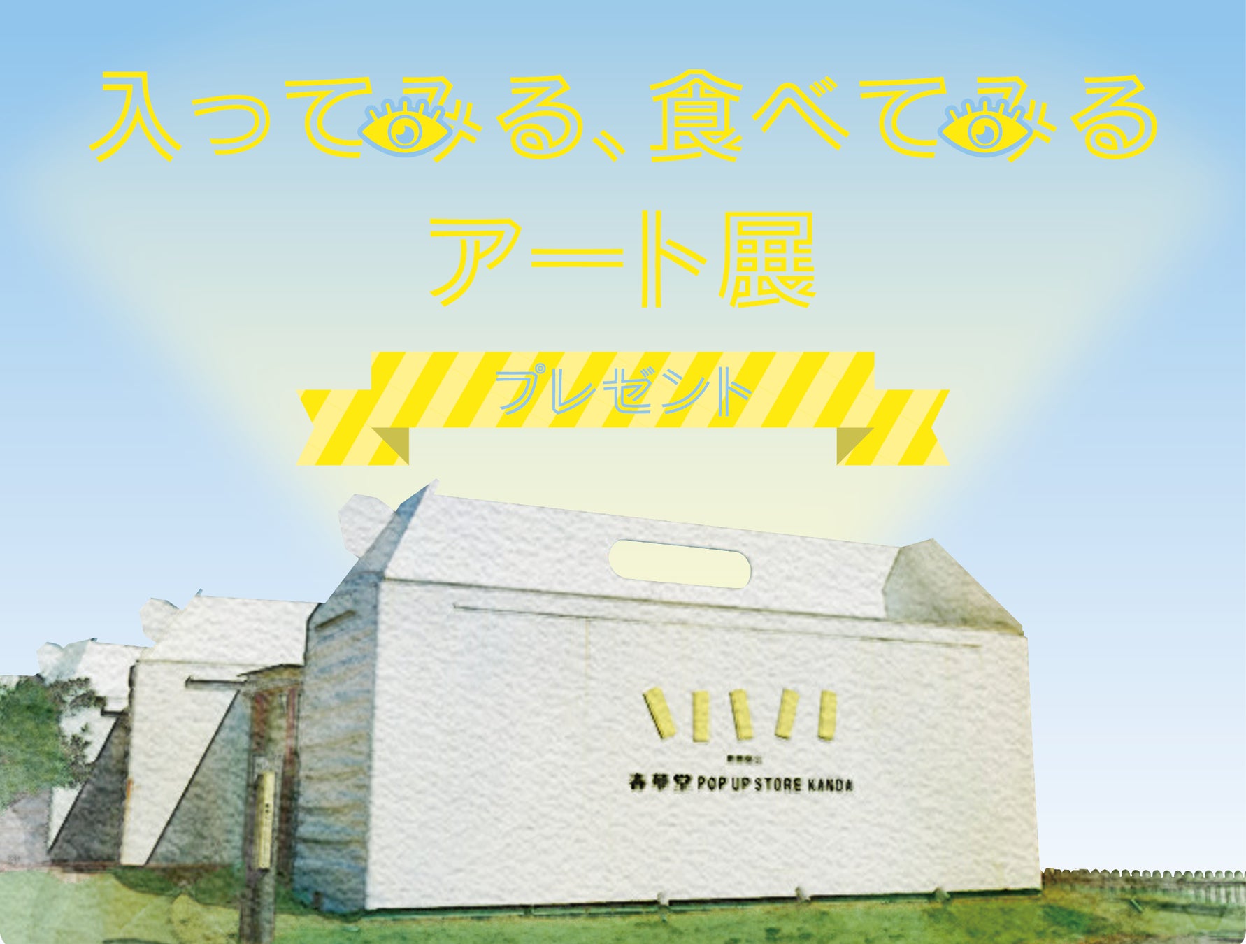 「入ってみる、食べてみる アート展」は、 2021年4月にオープンした複合施設「SWEETS BANK」の斜め向かいに位置する“POP UP STORE KANDA”にて開催します。