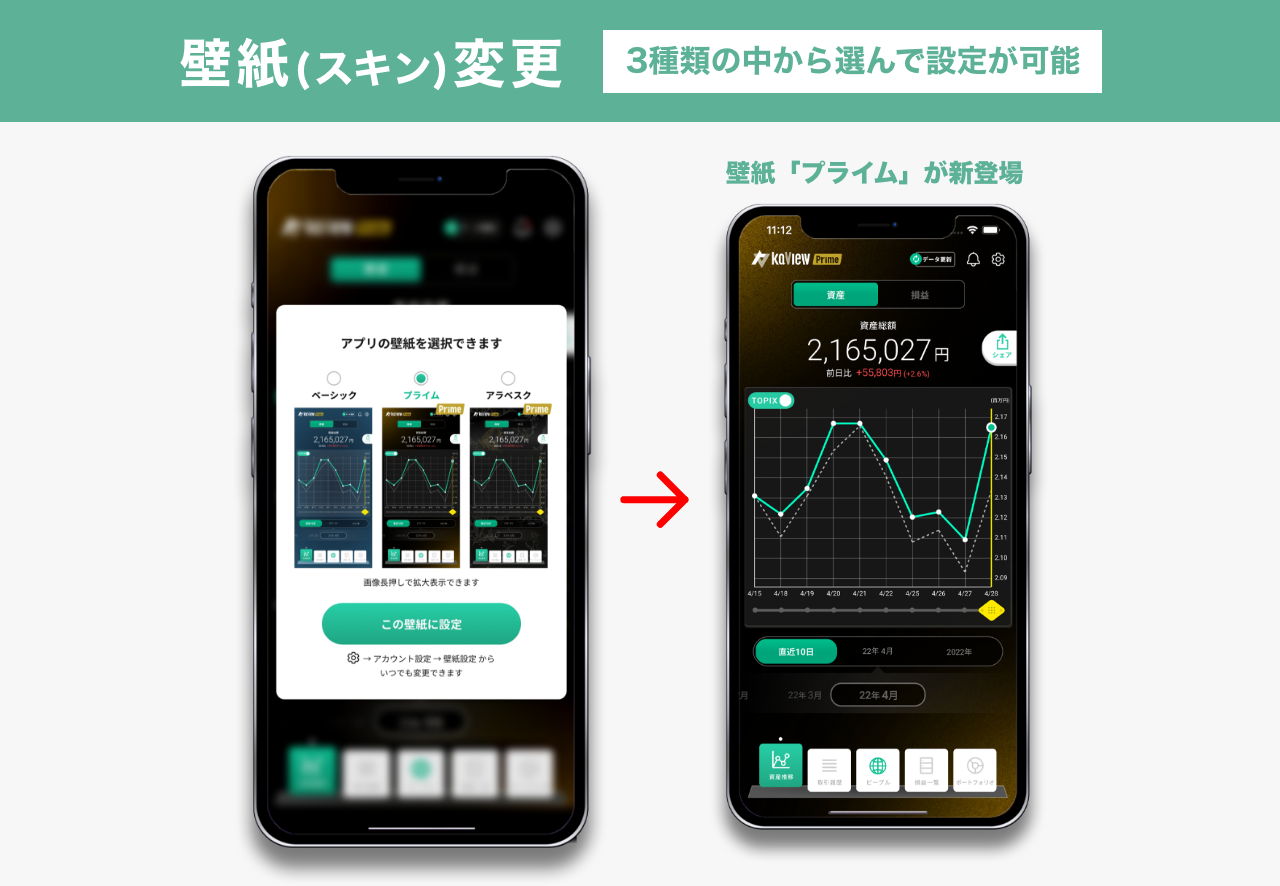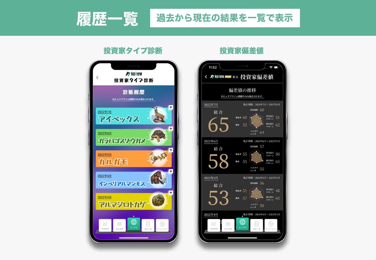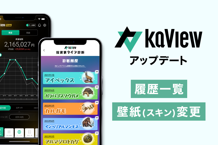 株式投資 管理・分析アプリ『カビュウ』で投資家タイプ診断・投資家偏差値の「履歴一覧」を実装!さらに壁紙(スキン)の変更が可能に