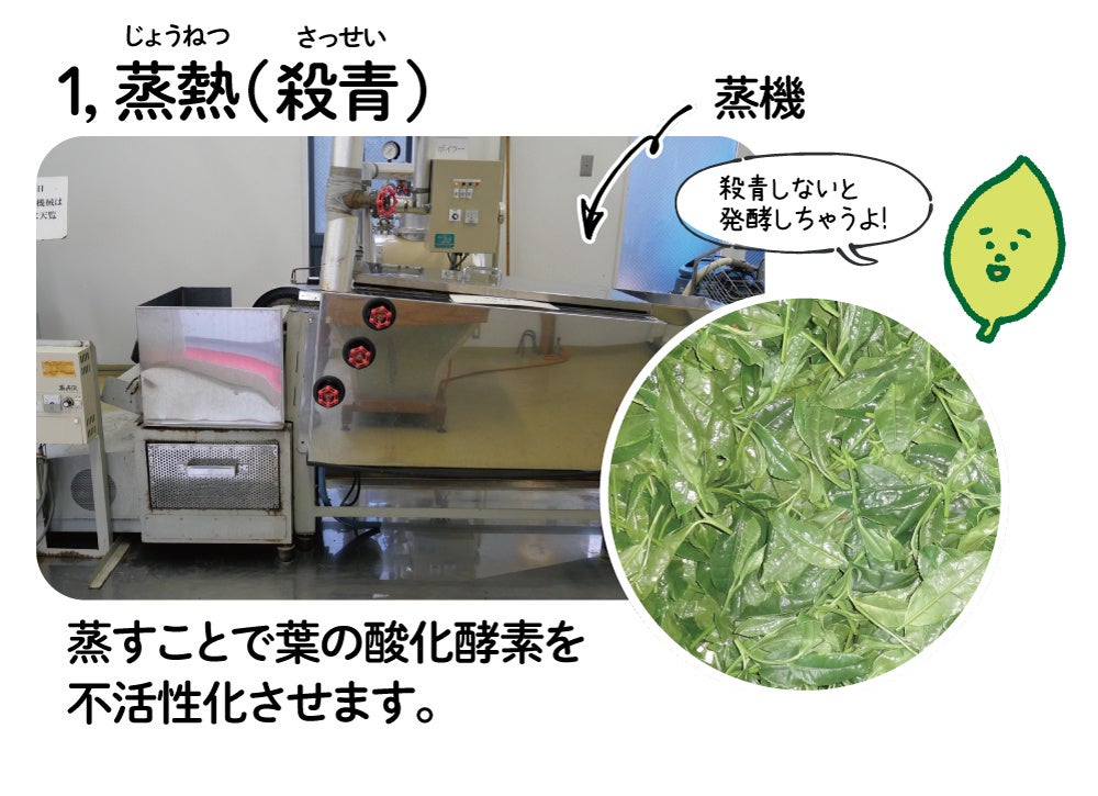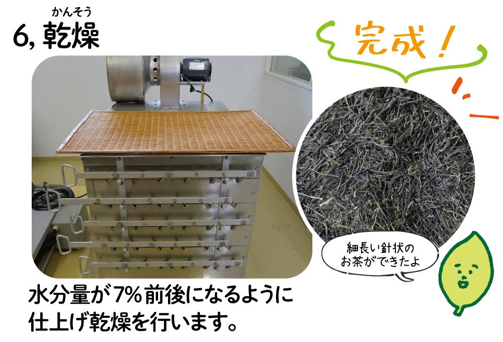 (生葉2.5kgを製茶すると約500gのお茶が出来上がります。)