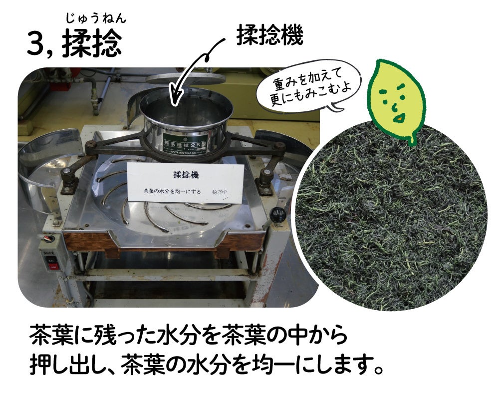 当時は手で揉んで作業していましたが、現在では機械化されており、今回の体験メニューではその一部を実際に体験していただけます。
