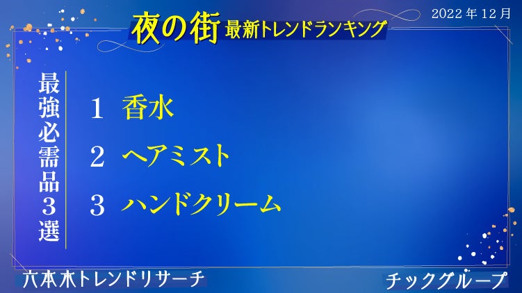30年の歴史を持ち、流行発信地渋谷からティーンを中心としたトレンドを発信し続ける「渋谷トレンドリサーチ」と、創業27年、六本木/銀座エリアを中心に富裕層向け高級クラブとして4店舗を構える「クラブチックグループ」が、チックグループ勤務キャストを対象にトレンド調査を実施。女性たちの生の声を反映した『六本木トレンドリサーチ』を配信します。