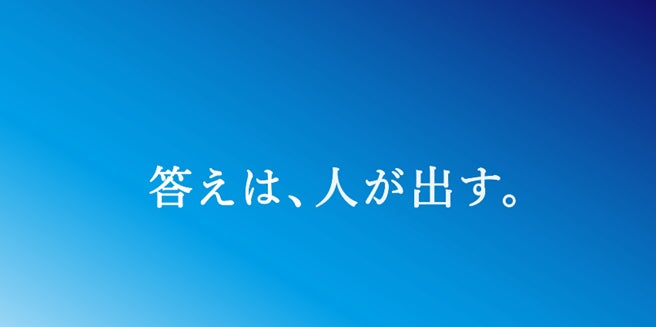 新スローガン「答えは、人が出す。」は、当社のコーポレートステートメント「あらゆる課題は、人で解決する。」を土台に、AIや新技術が進化する現代でも、「最後に答えを出すのは人である」という確信から生まれたものです。 “構想だけでなく、実行し、成果を出す”そのプロセスすべてにおいて、人の力が不可欠であるという当社の想いを表現しています。