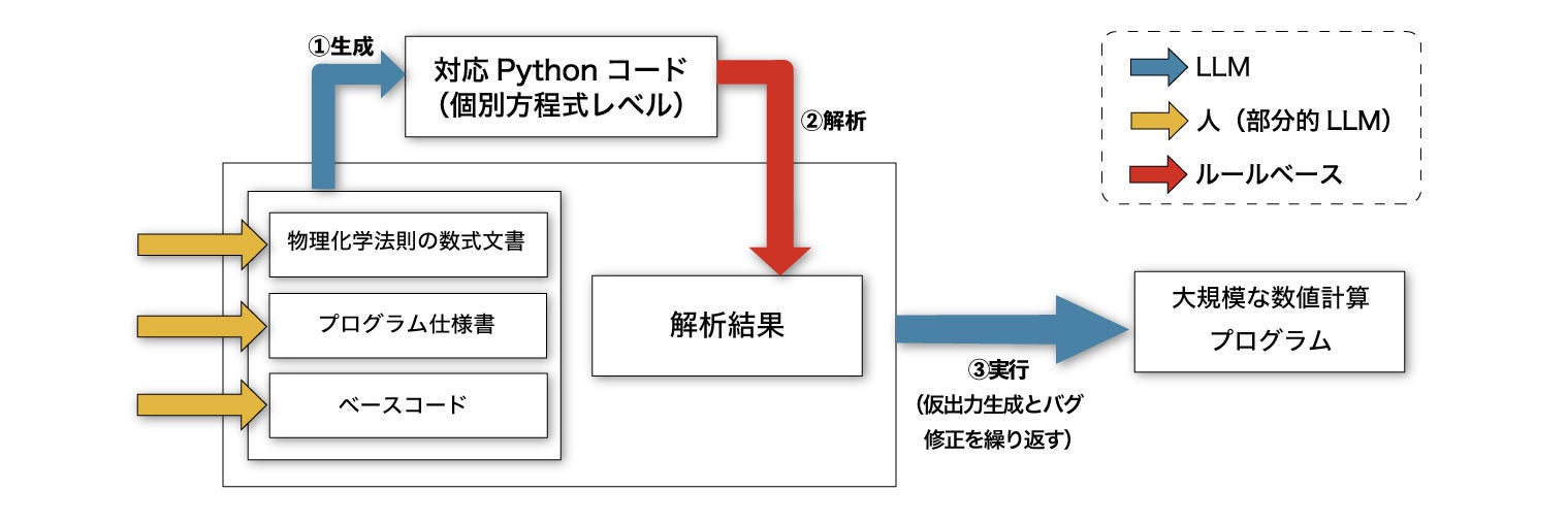 今回の検証では、数式、条件、制約を人間が理解可能な形式で文書化し、それらを生成AIに入力することで、大規模な数値計算プログラムを正しく生成できるかを評価しました。その結果、「守るべき開発ルール」や「手本となるベースコード」を適切に与えることで、生成AIが勝手な簡略化や誤解釈を行うことなく、正確なプログラムを生成できることを確認しました。そして、汎用的なコーディングエージェント※3がプログラム実装の大部分を担うことができ、人間の負担を従来の3分の1程度に大幅軽減できる見通しを得ました。これにより、開発者は理論や数式の検討、結果の解釈といった本質的な技術検討に、より注力できるようになります。