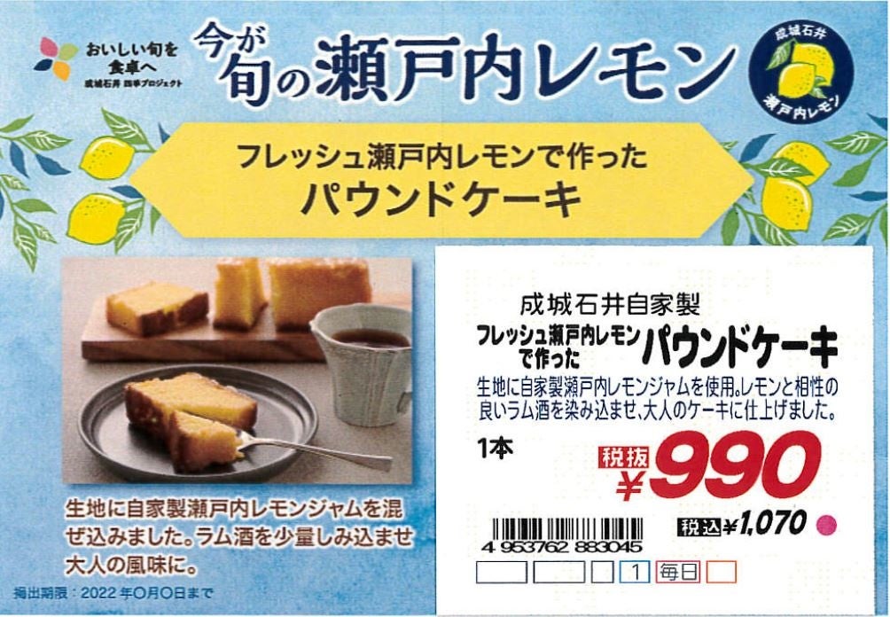 ※成城石井自家製 フレッシュ瀬戸内レモンで作ったパウンドケーキ及び、成城石井自家製 瀬戸内レモンウインナーについてはオンラインショップでも取り扱いがございます。