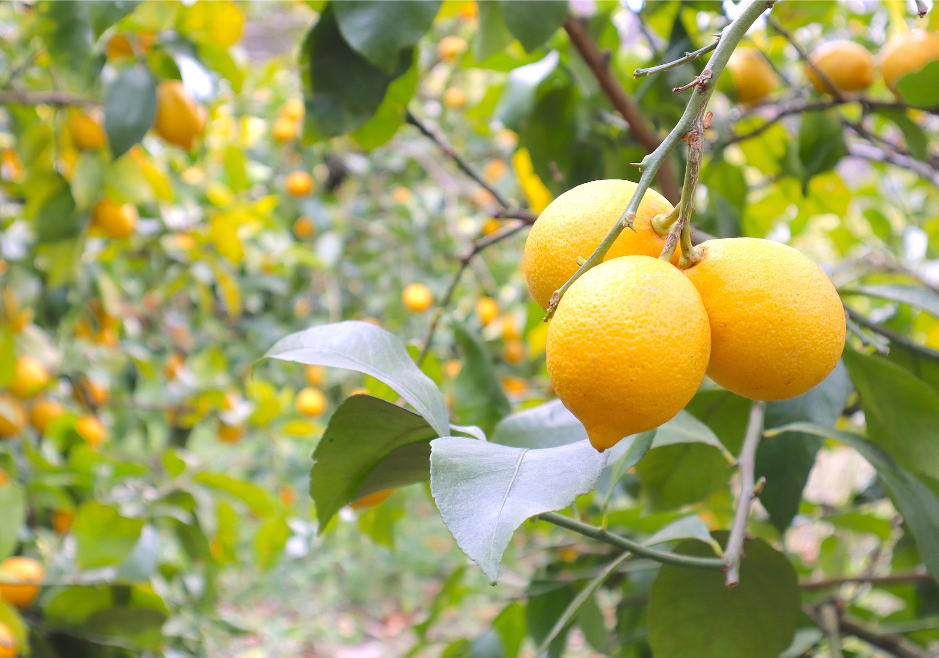 レモンは温暖な地域にしか育たないため、日本国内で流通しているレモンの約9割が、アメリカやチリなどの海外からの輸入品です。外国産のレモンは、完熟する前に収穫し、防かび剤やワックスが使われた状態で輸入されるものが多くを占めています。一方、国産のレモンは、最もおいしいタイミングに収穫するだけでなく、消費までに時間がかからないため薬剤を使用せず出荷できることから、高い支持を集めています。中でも注目は、温暖な瀬戸内の気候の中で太陽をいっぱいに浴びたおいしさあふれる「瀬戸内レモン」。瀬戸内は降水量も少なく、晴れが多い気候が特長。瀬戸内レモンはレモン栽培に最適な環境下で育っているため、酸味がまろやかで甘味が強いことに加えて香りがよく、冬から初春にかけて黄色く色づき旬を迎えます。風味を生かしたレモン料理は多数ありますが、瀬戸内の旬のレモンは格別。酸味も甘みも凝縮された味わいで、果実の旨みを堪能いただけます。