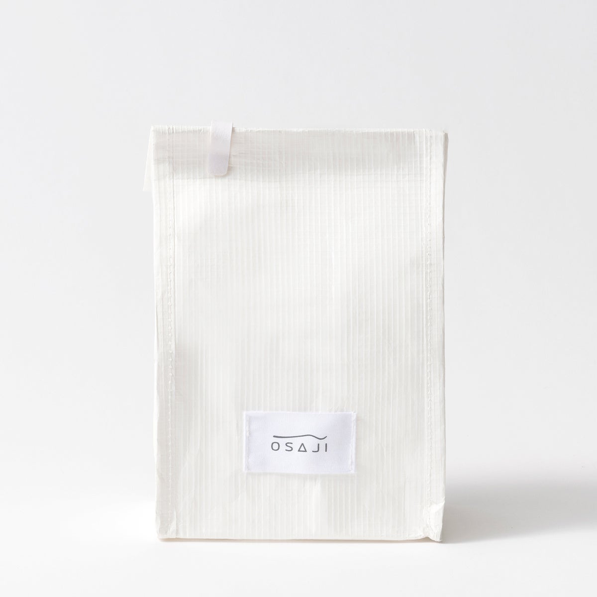 クラフト紙ならではの風合いは、折れやシワもデザインの一部として、OSAJIならではのニュアンスを醸し出しています。中に入れる商品のサイズに応じて、折り曲げてクリップで止めるラフなデザインです。クリップも紙製のクリップを採用しています。