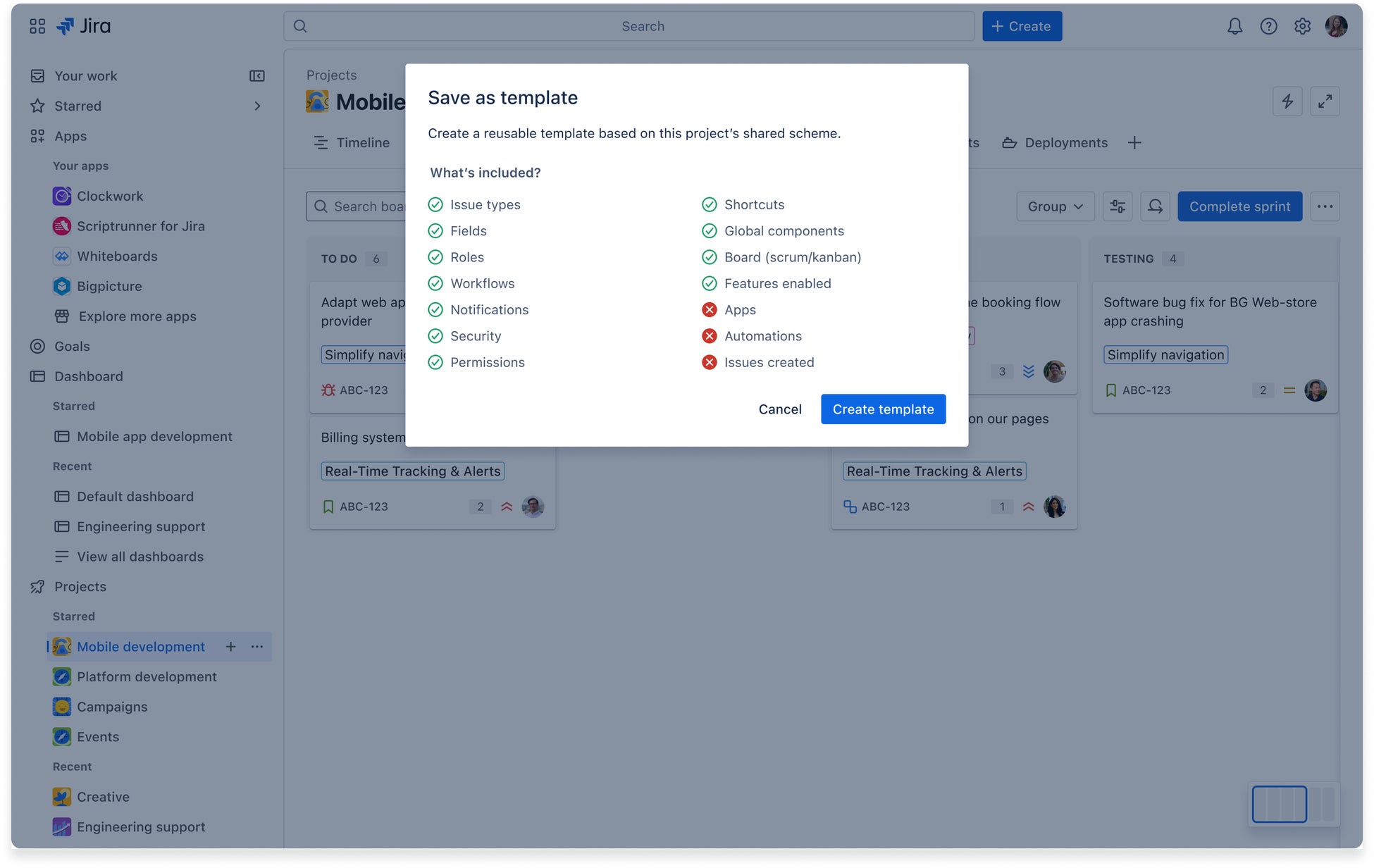 企業が成長してゆく中では一貫性は重要な要素です。カスタムプロジェクトテンプレートを使用すると、ワークフローや自動化、フィールド、権限などを事前に設定した、再利用可能なテンプレートとして組織全体で利用できるようになります。カスタムプロジェクトテンプレートを使用すれば、マーケティングキャンペーンや人事の入社プロセスなど、標準化したいプロセスを簡単に定義できます。