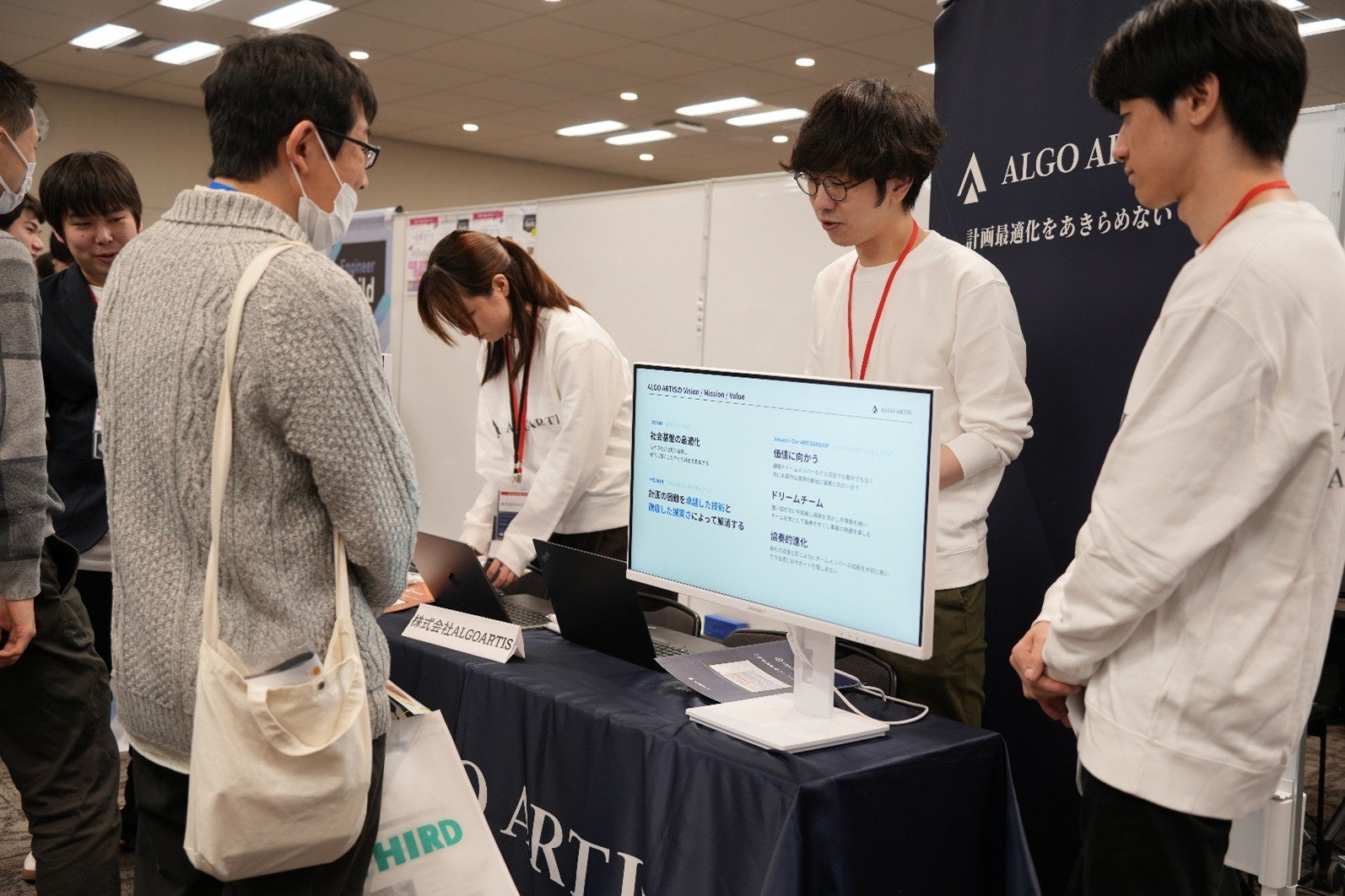 スポンサー企業のブースを回ることでAtCoderカレーを受け取ることができる企画も実施されました。各ブースでは技術やサービスに関する紹介に加え、競技プログラミングをきっかけとしたキャリアや開発の話題など、来場者と企業担当者との活発なコミュニケーションが見られました。