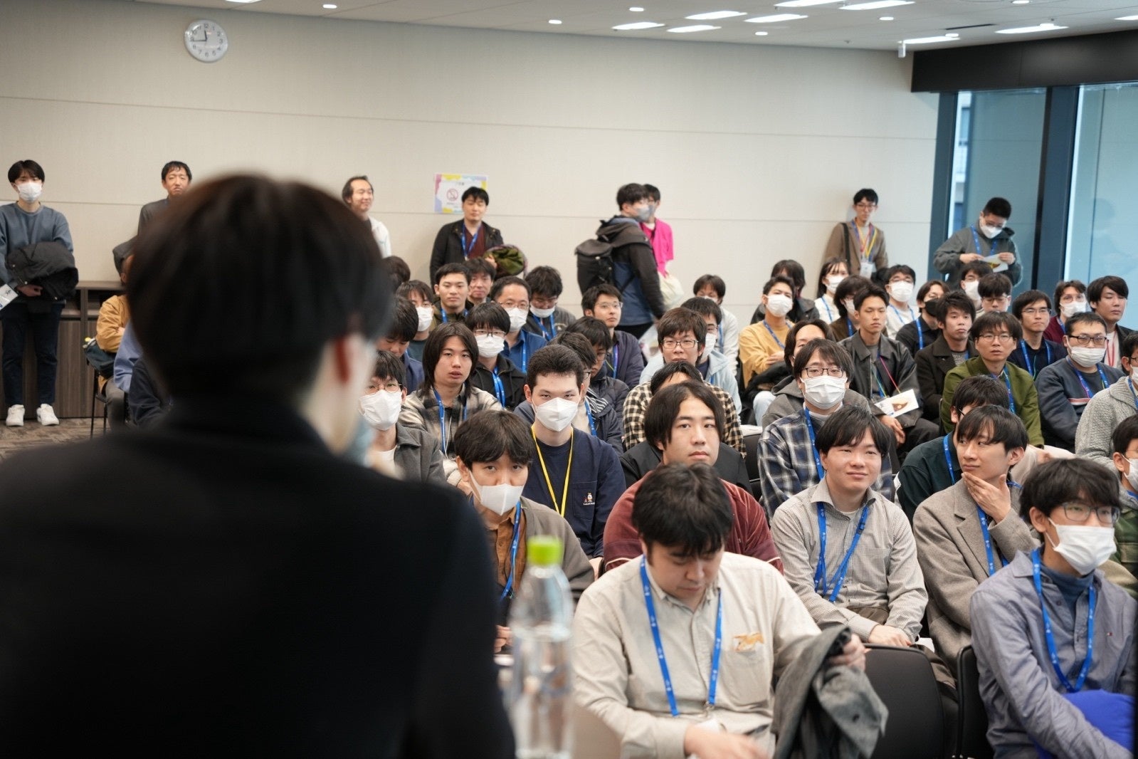 決勝会場とは別に設けられた観戦会場では、競技の様子が実況中継されました。来場者はトップレベルの競技をリアルタイムで観戦しながら、解法や戦略に注目するなど、高い関心を寄せていました。
