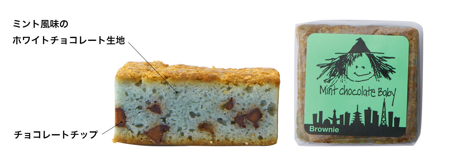 ミント風味のホワイトチョコレート生地にチョコレートチップが入った爽やかで贅沢なブラウニーに仕上げました。
