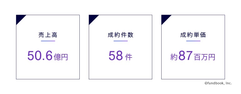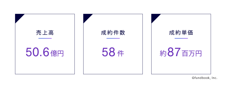 当社は「気軽にM&Aの相談ができて、安心してM&Aが選択できる新しい世界を創出する」というパーパスの実現のために、独自のマッチングモデル「fundbook platform」を特徴としたM&A仲介サービスで、日本全国のあらゆるエリア・業種で中小企業のM&Aを支援してまいりました。2017年の創業以来、様々な試行錯誤を重ね、第6期目となる2022年度の業績は売上高が50.6億円、成約件数が58件、成約単価が約87百万円(※)となりました。