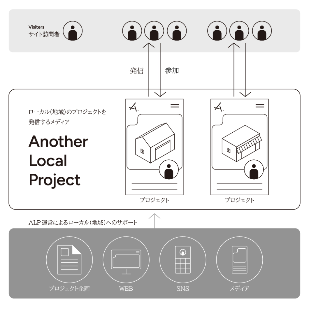 ALPは、ローカル情報を発信するメディアとして地域の人の取り組みやプロジェクトを紹介し、いつもの活動領域と異なる舞台で、多様なスキルを活かして挑戦したいという想いを持つ人が、その可能性を模索するための機会をつくります。