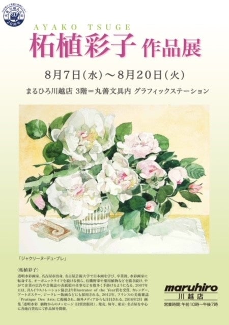 【川越丸広】初開催中★「柘植彩子作品展」透明水彩で植物や果実、野菜を瑞々しく描写し、広告などで幅広く活躍する柘植彩子の水彩原画・版画を展示販売。爽やかな空気感と花達の香りが伝わってくる様な珠玉の作品