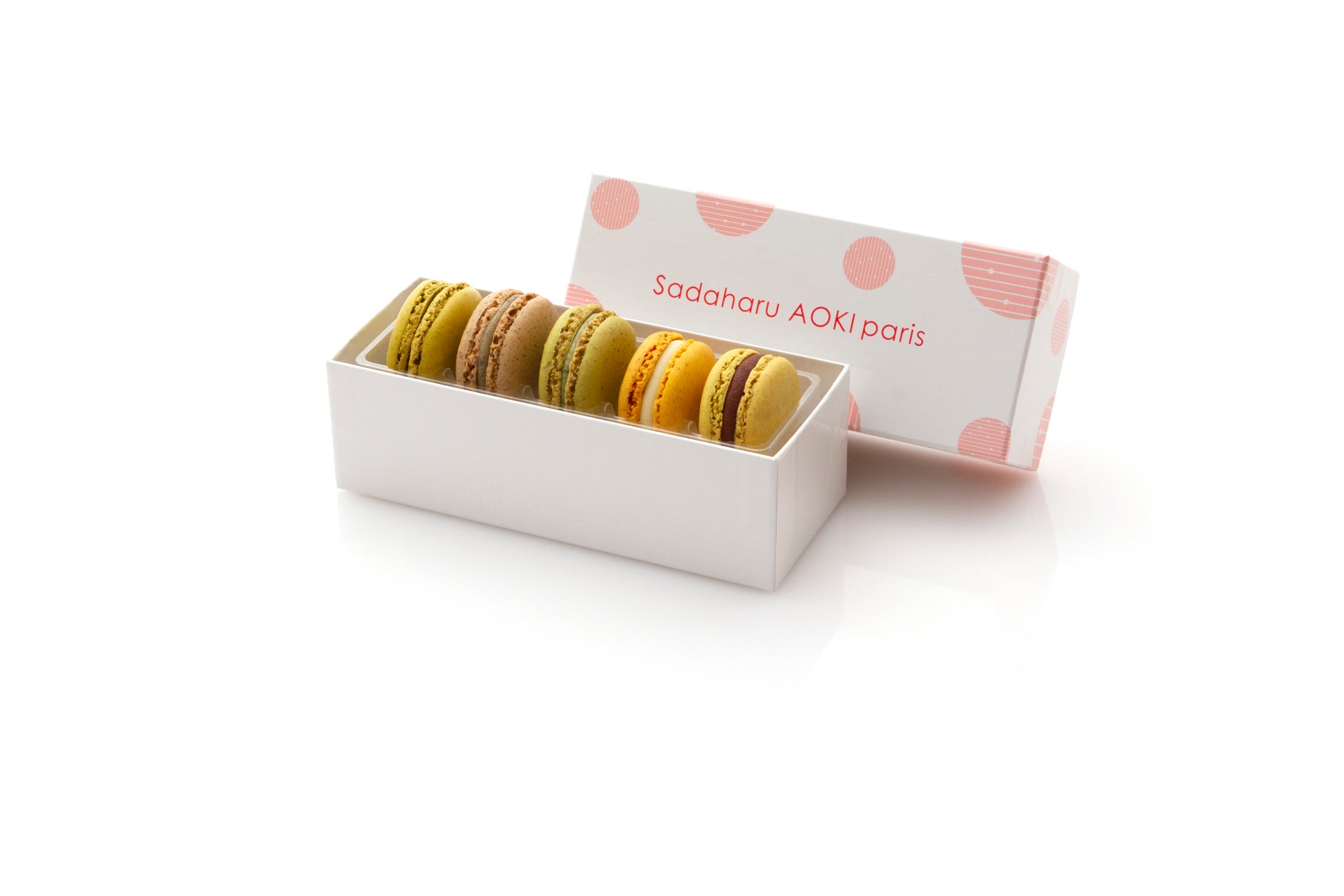 パリ直輸入でご用意するアオキのスペシャリテ“マカロン”。「ホウジチャ」「ゲンマイチャ」「ユズ」「ワサビ」の4種類のパリ限定フレーバーにスペシャリテの「マッチャ」をプラスした、和素材マカロンのアソートに出会えるのはジェイアール名古屋タカシマヤだけ。パリジャンに愛される和素材マカロンはどれも香り豊かで、素材の良さがぎゅっと詰まっています。